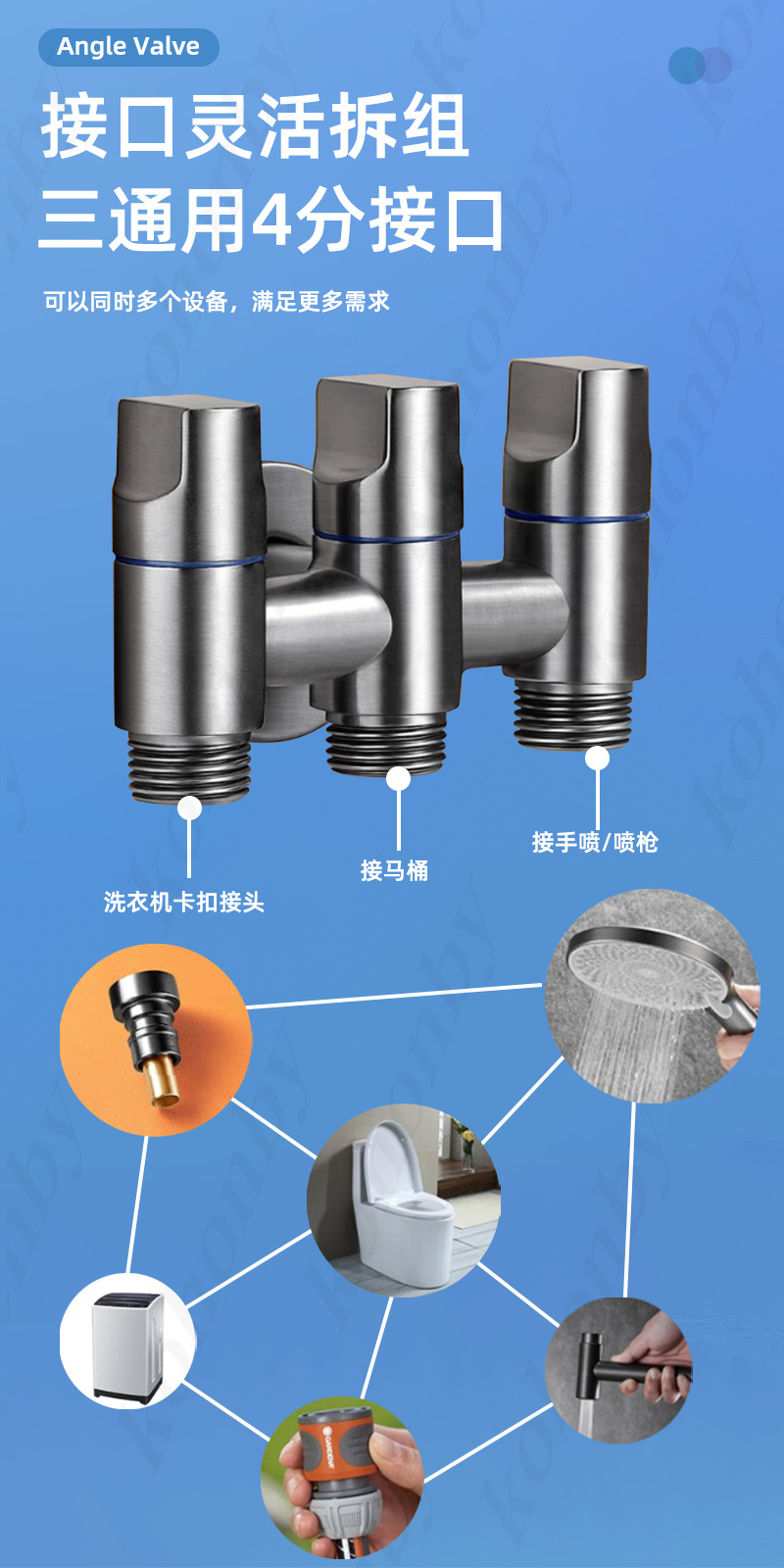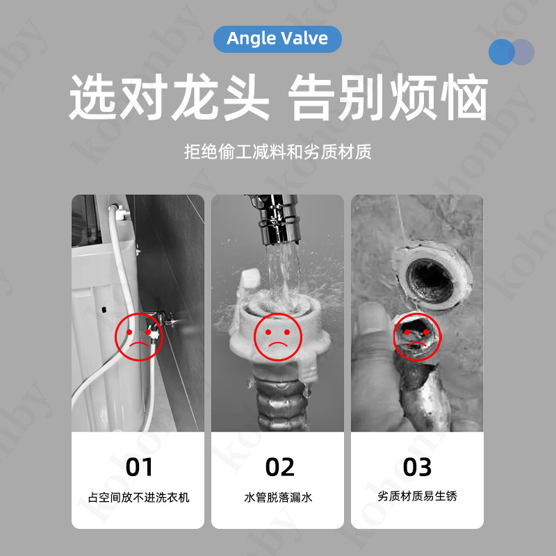 스테인레스 스틸 일대일 3 각 밸브 3 제어 수도꼭지 이중 출구 화장실 3 방향 물 분배 밸브 세탁기 수도꼭지스토어 가기