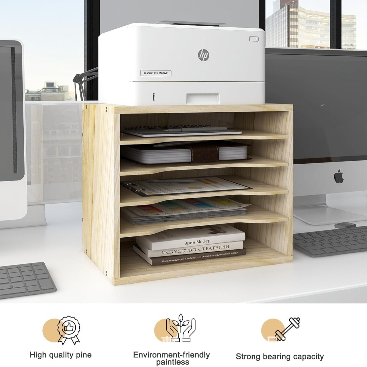 나무 데스크톱 파일 랙 오피스 데스크 데이터 촬영 랙 멀티 레이어 스택 저장 랙 데스크 솔리드 우드 스토리지 랙