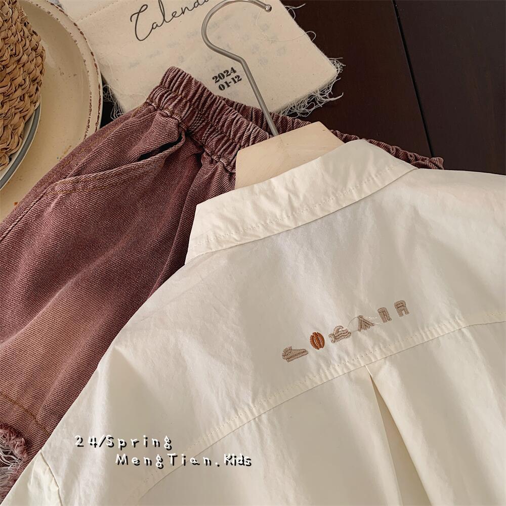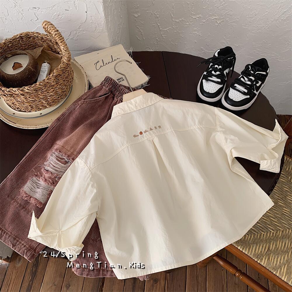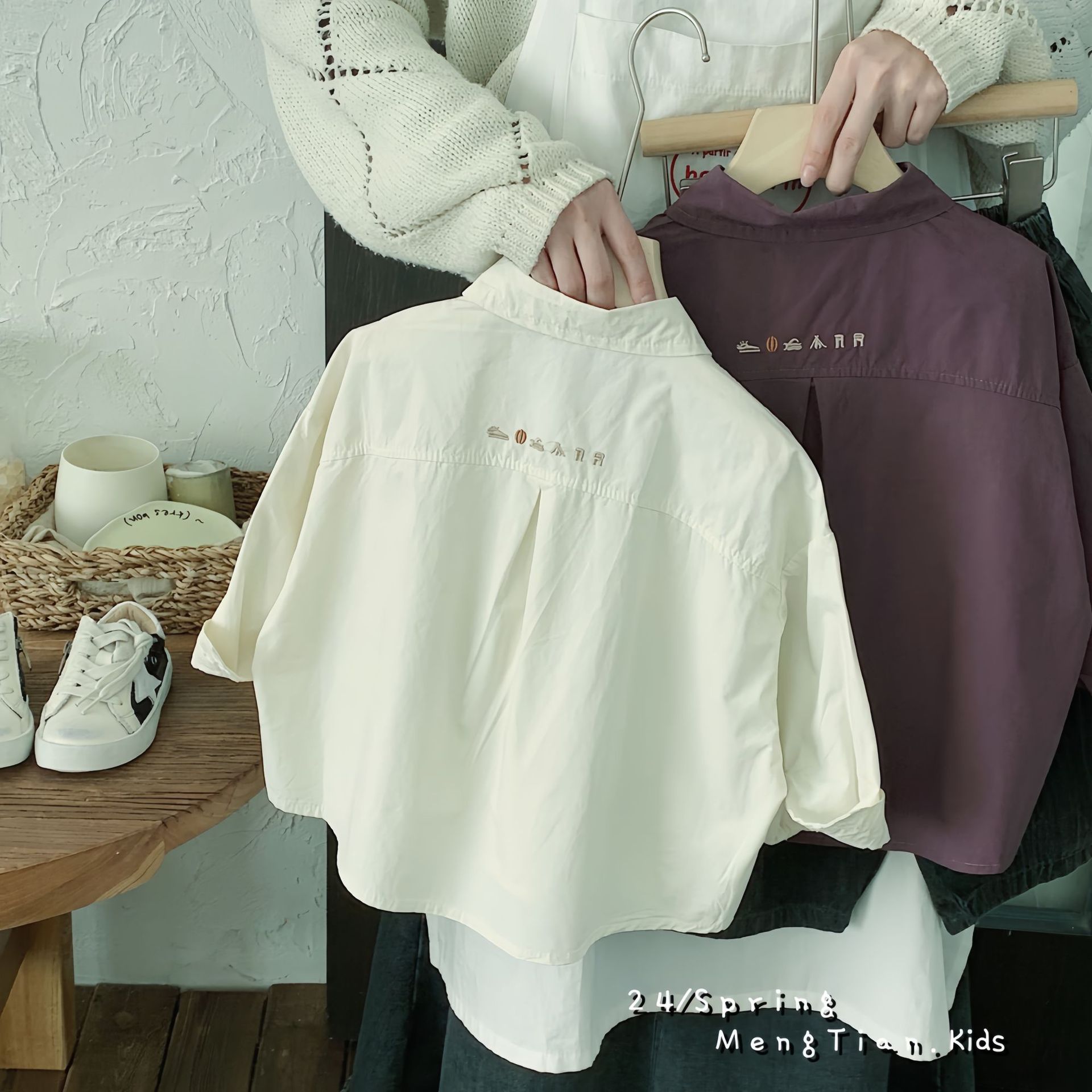 Mengtian 아동 셔츠 2021 봄 새 소년 상형 문자 자수 중국 스타일 셔츠 작은 신선한 탑스토어 가기