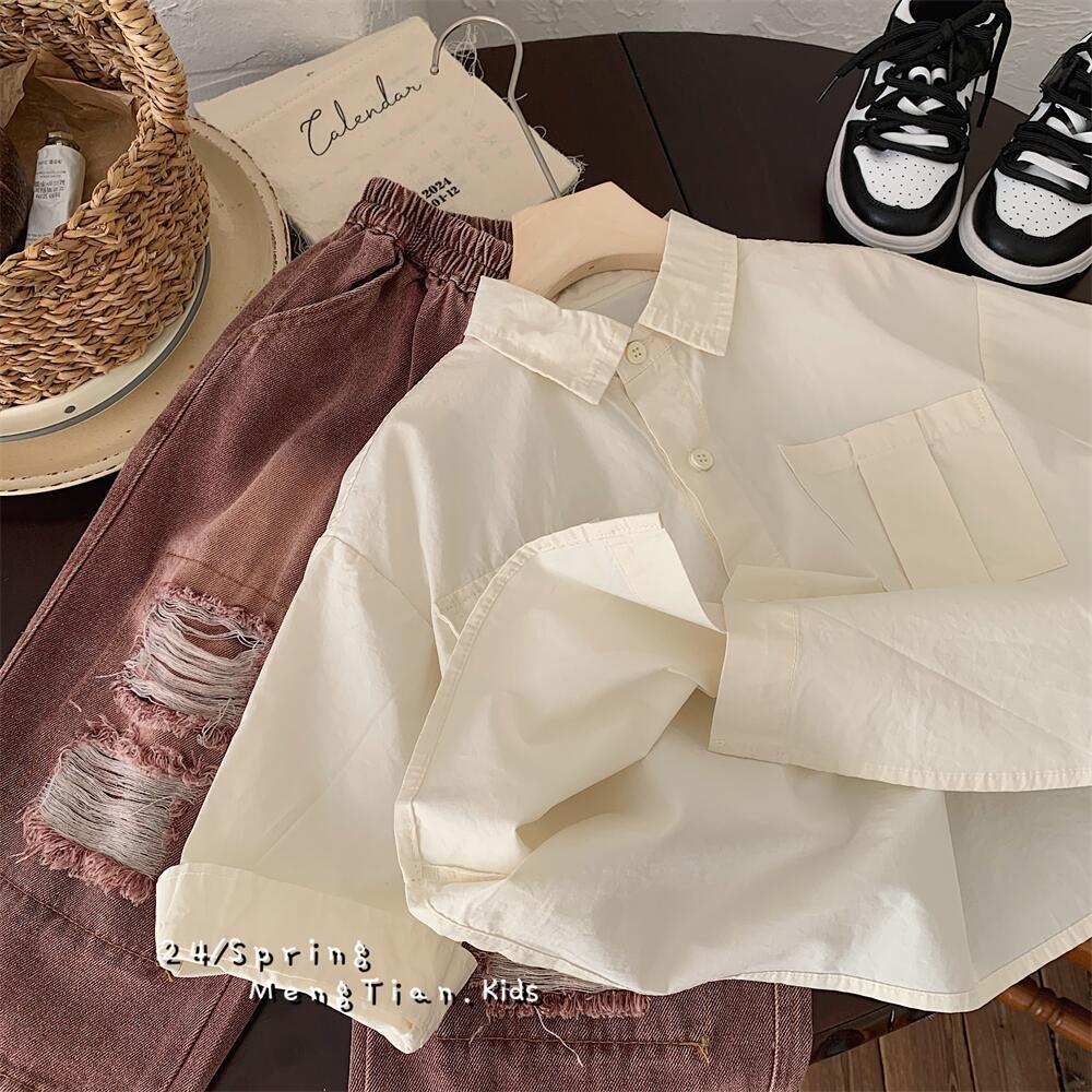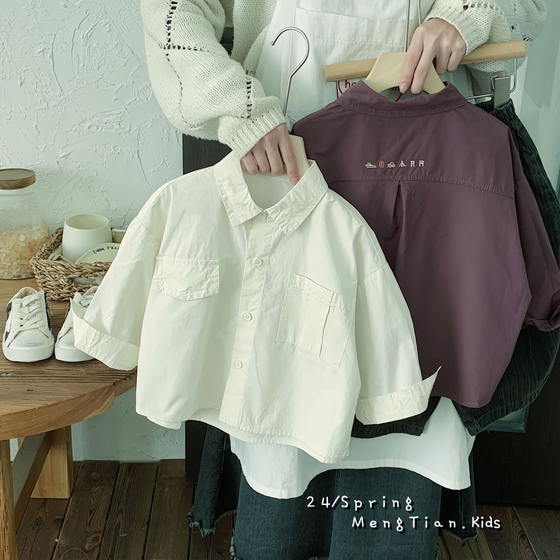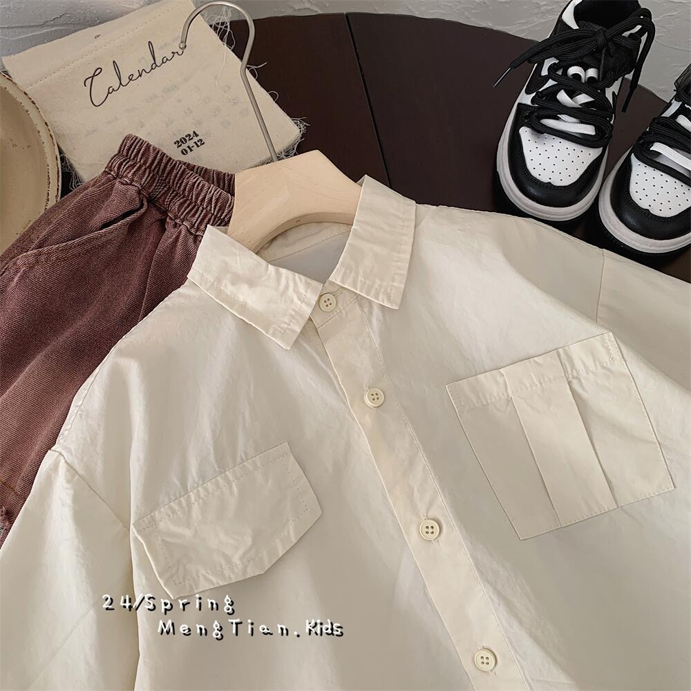 Mengtian 아동 셔츠 2021 봄 새 소년 상형 문자 자수 중국 스타일 셔츠 작은 신선한 탑스토어 가기
