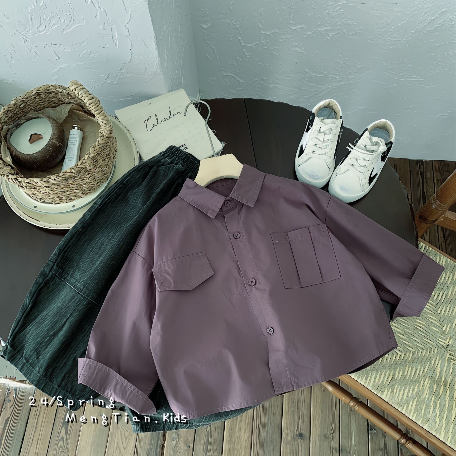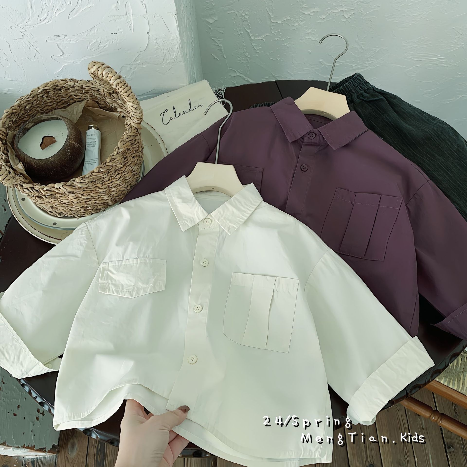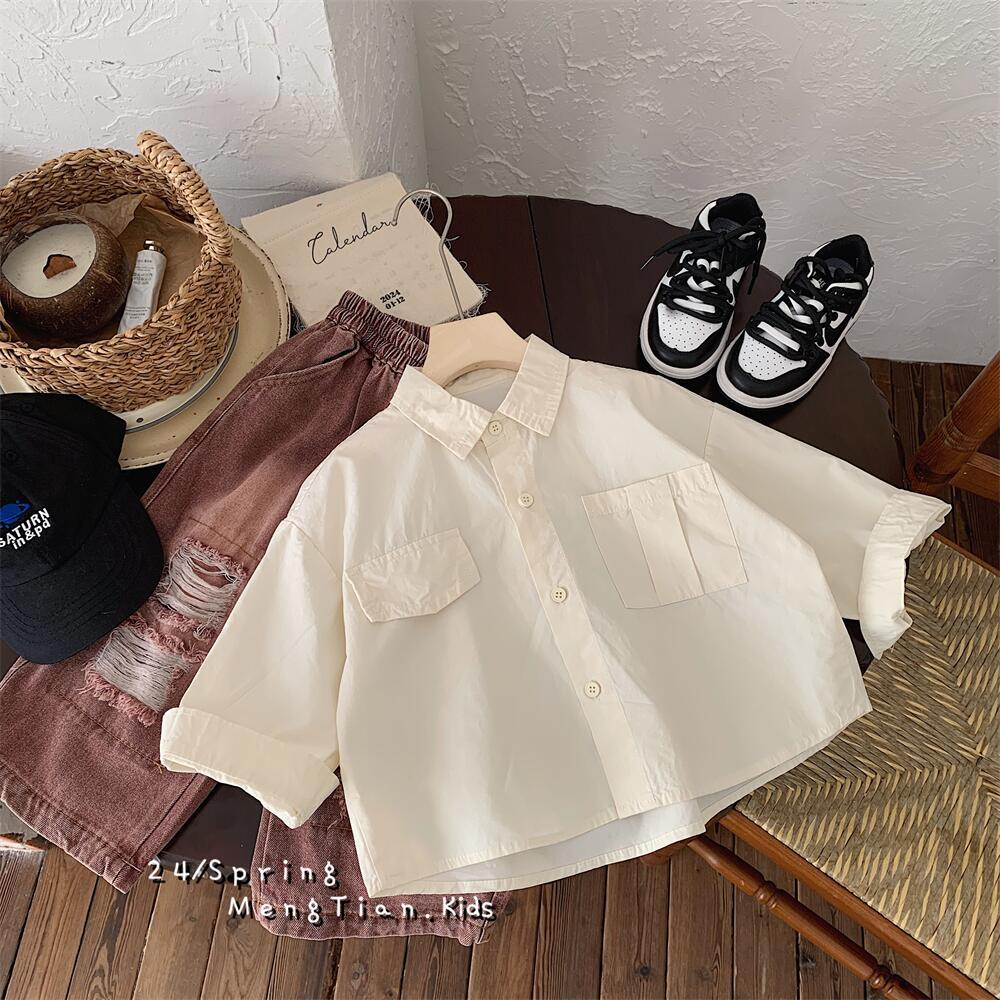 Mengtian 아동 셔츠 2021 봄 새 소년 상형 문자 자수 중국 스타일 셔츠 작은 신선한 탑