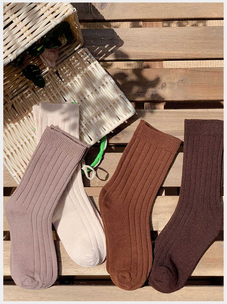 소녀 중간 종아리 길이 양말 봄과 가을 새로운 아기 단색면 양말 중 큰 어린이 학생 양말 소년 양말 어린이 학생 양말