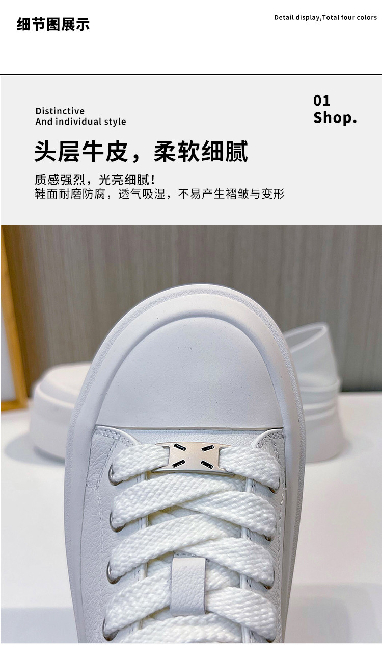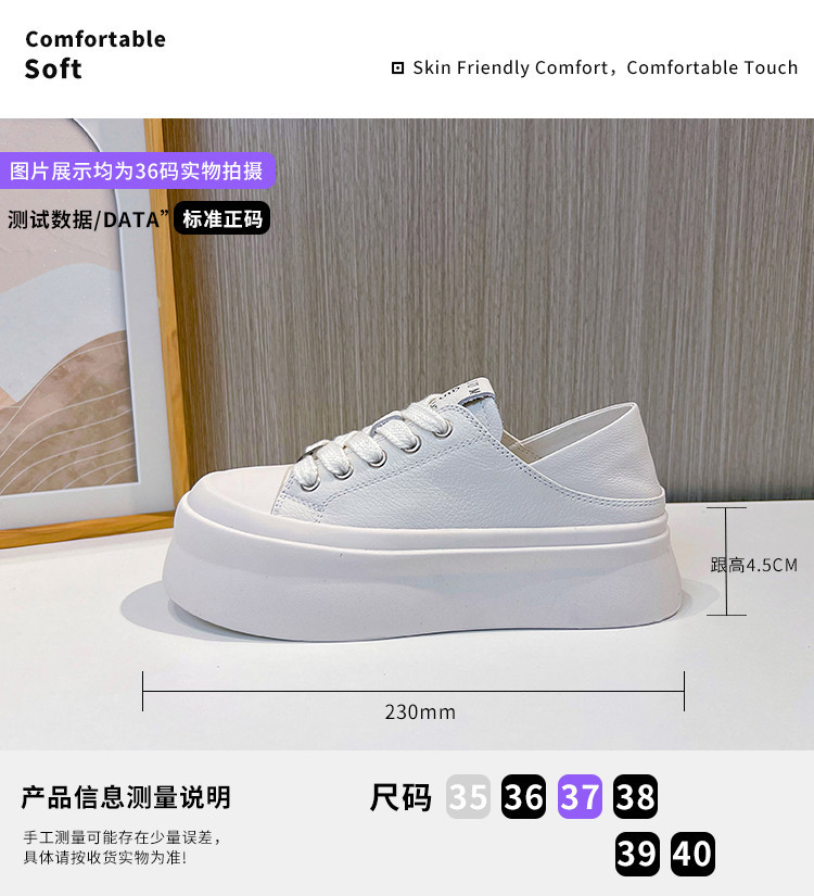 여성을위한 첫 번째 레이어 소 가죽 흰색 신발 2025 봄 새로운 두꺼운 밑창 높이 증가 대형 헤드 스니커즈 캐주얼 다목적 투웨어 여성 신발스토어 가기
