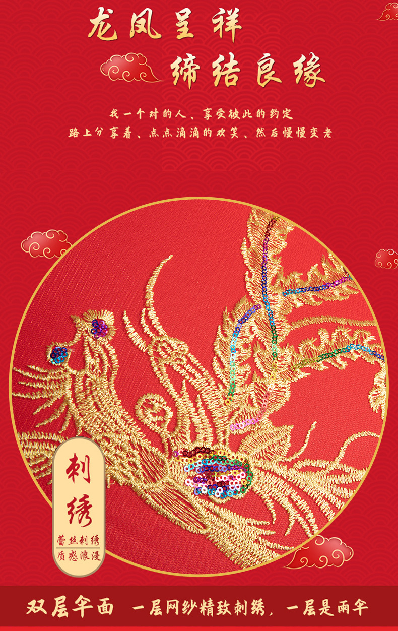 레드 우산 신부 우산 웨딩 롱 핸들 웨딩 우산 웨딩 용품 선물 더블 레이어 용과 피닉스 자수 웨딩 신부 우산스토어 가기