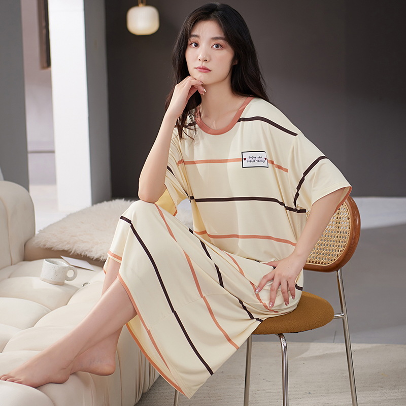 나이트 드레스 여성의 봄/여름 얇은 긴 원피스 여성 잠옷 모달 시원한 여름 플러스 사이즈 겉옷 홈웨어