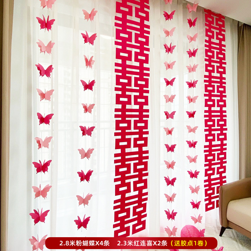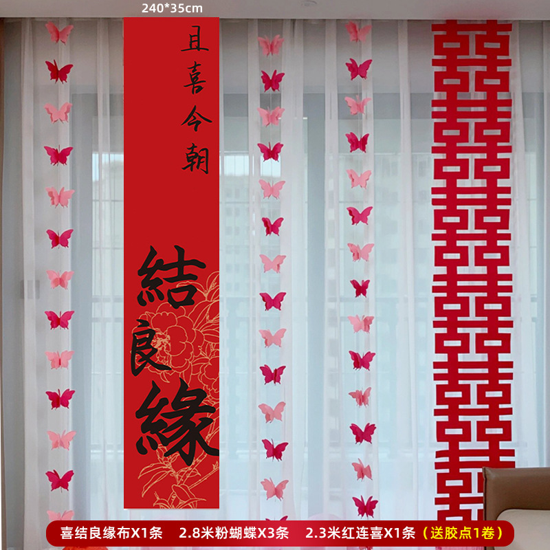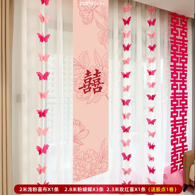 웨딩룸 레이아웃 세트, 웨딩 장식, 커튼, 매달린 천 꽃, 새 집, 침실, 거실, 남성 및 여성, Baixi 사진