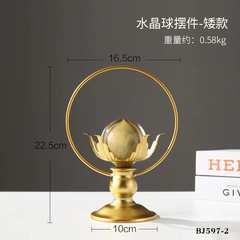 북유럽 빛 고급 금속 공예품 장식베이스 크리스탈 볼 장식 거실 사무실 데스크탑 장식 철 예술