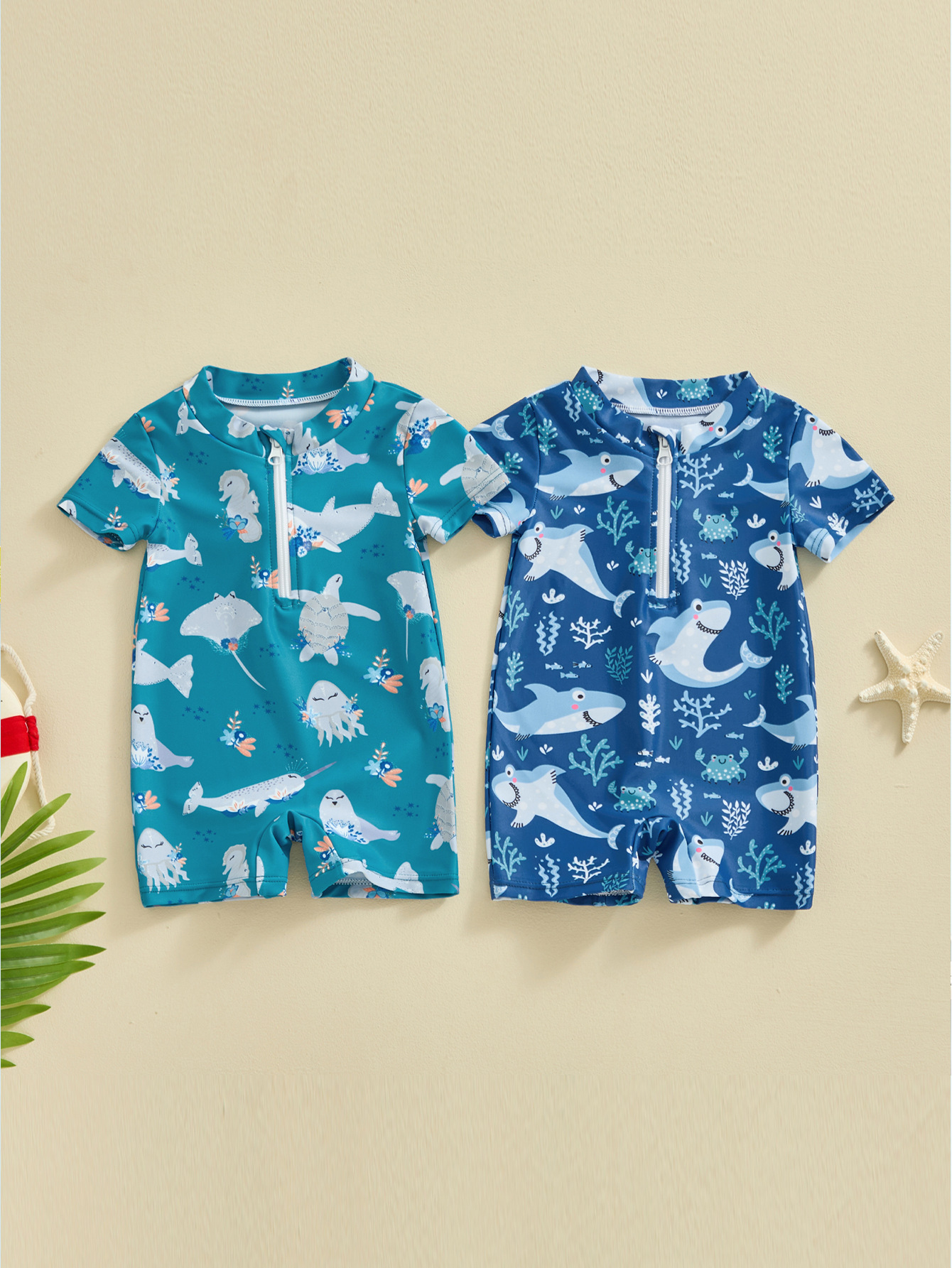 0-3M-3-6M-6-12M-1-2Y-2-3Y 어린이 소년 상어 돌고래 프린트 수영복