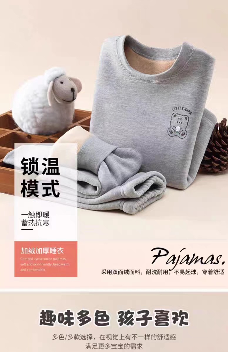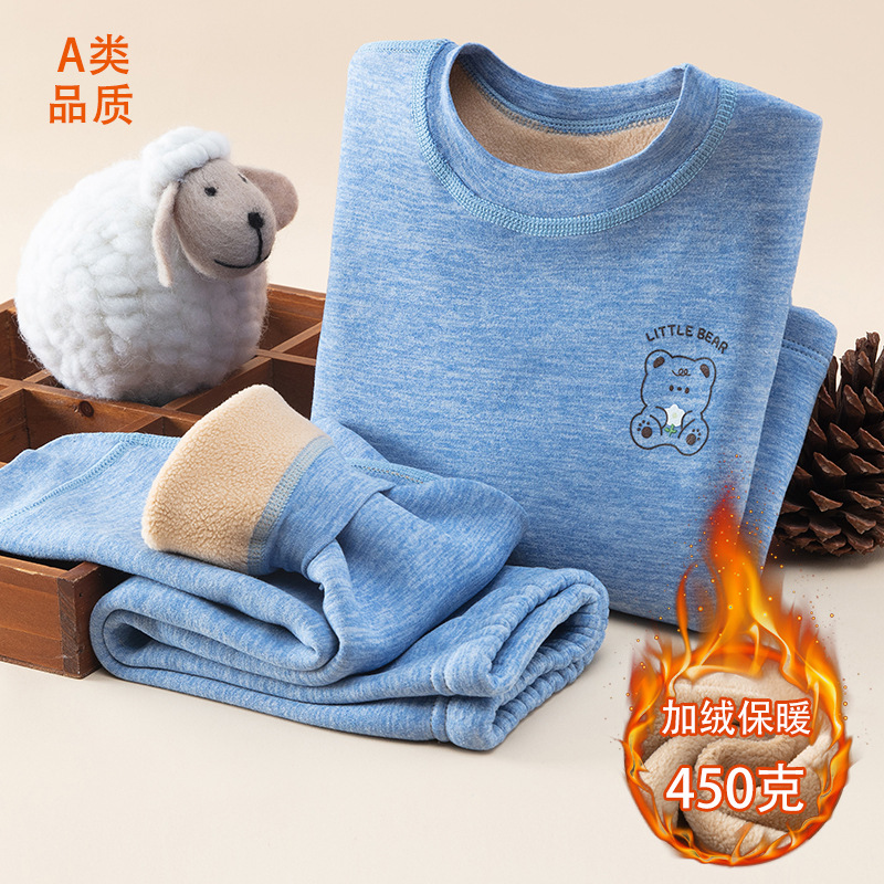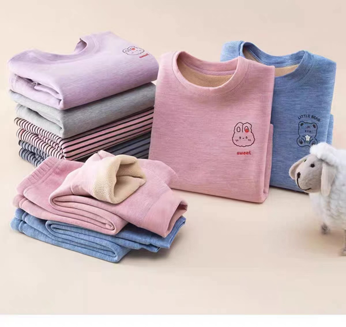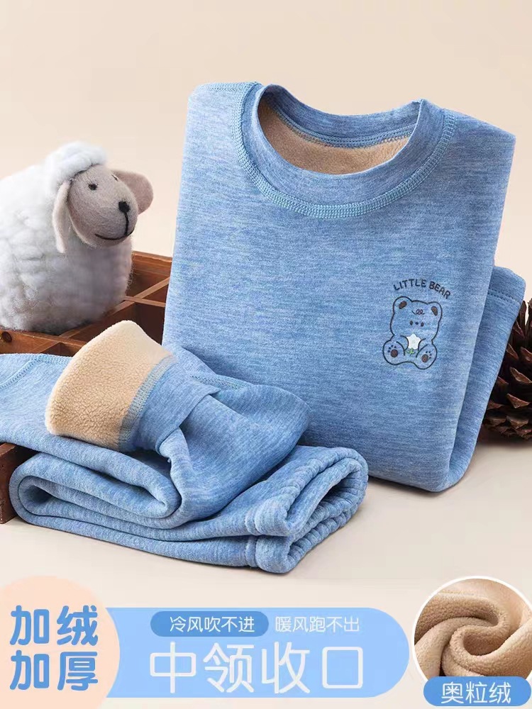 Happy fuxiao Boneless 어린이 열 속옷 소년 소녀 중고 칼라 하단복 기모 두껍게 된 홈웨어