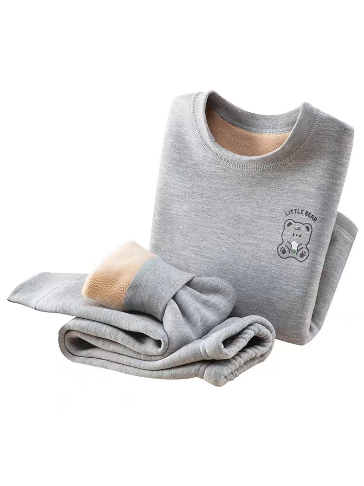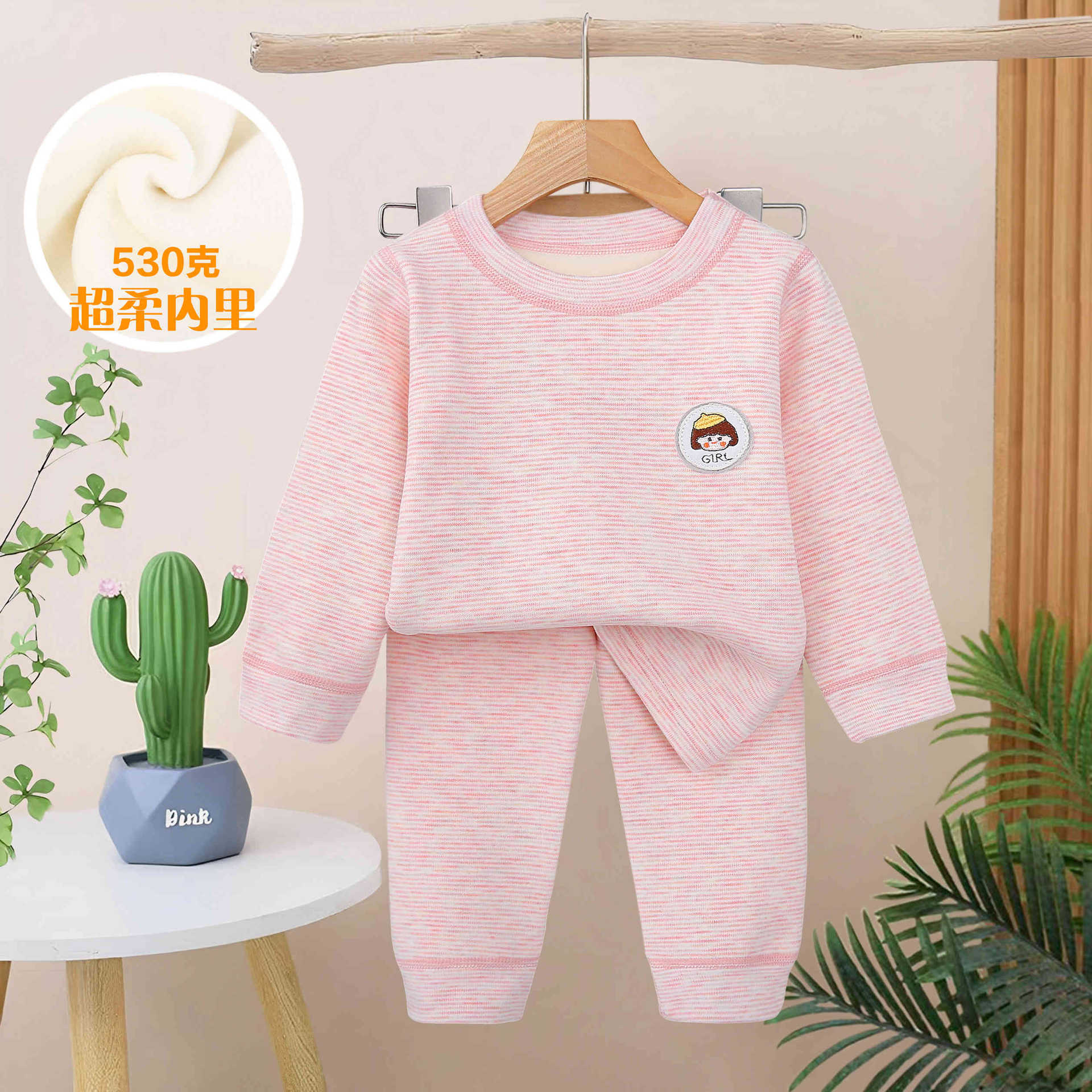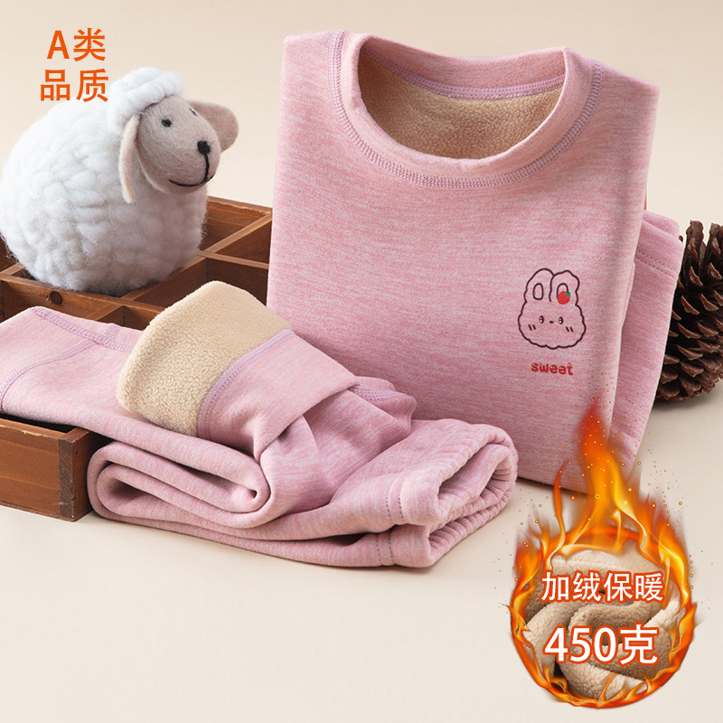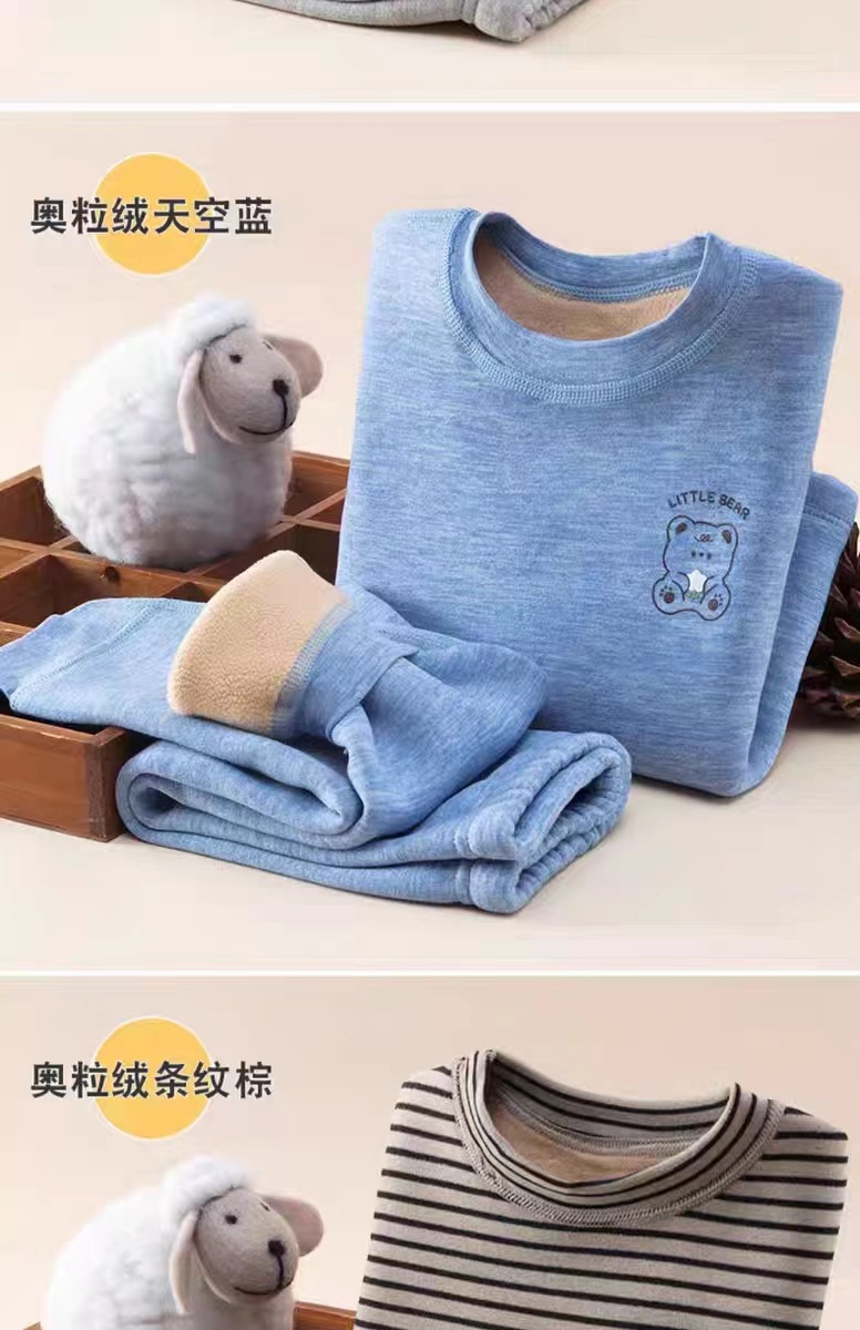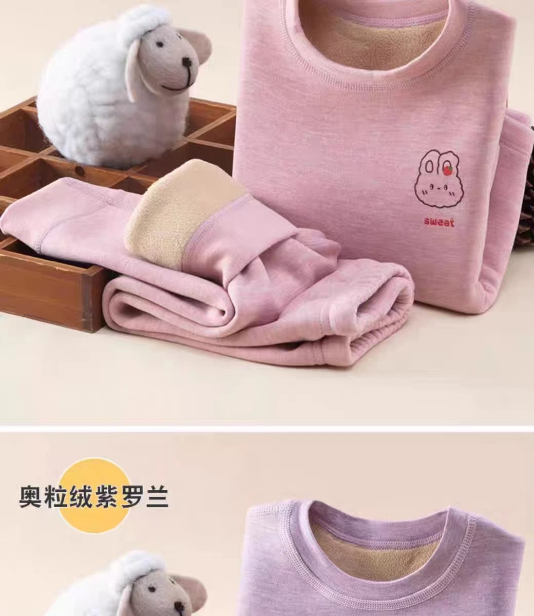 Happy fuxiao Boneless 어린이 열 속옷 소년 소녀 중고 칼라 하단복 기모 두껍게 된 홈웨어