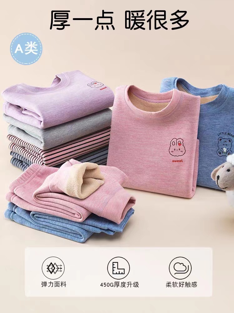 Happy fuxiao Boneless 어린이 열 속옷 소년 소녀 중고 칼라 하단복 기모 두껍게 된 홈웨어스토어 가기