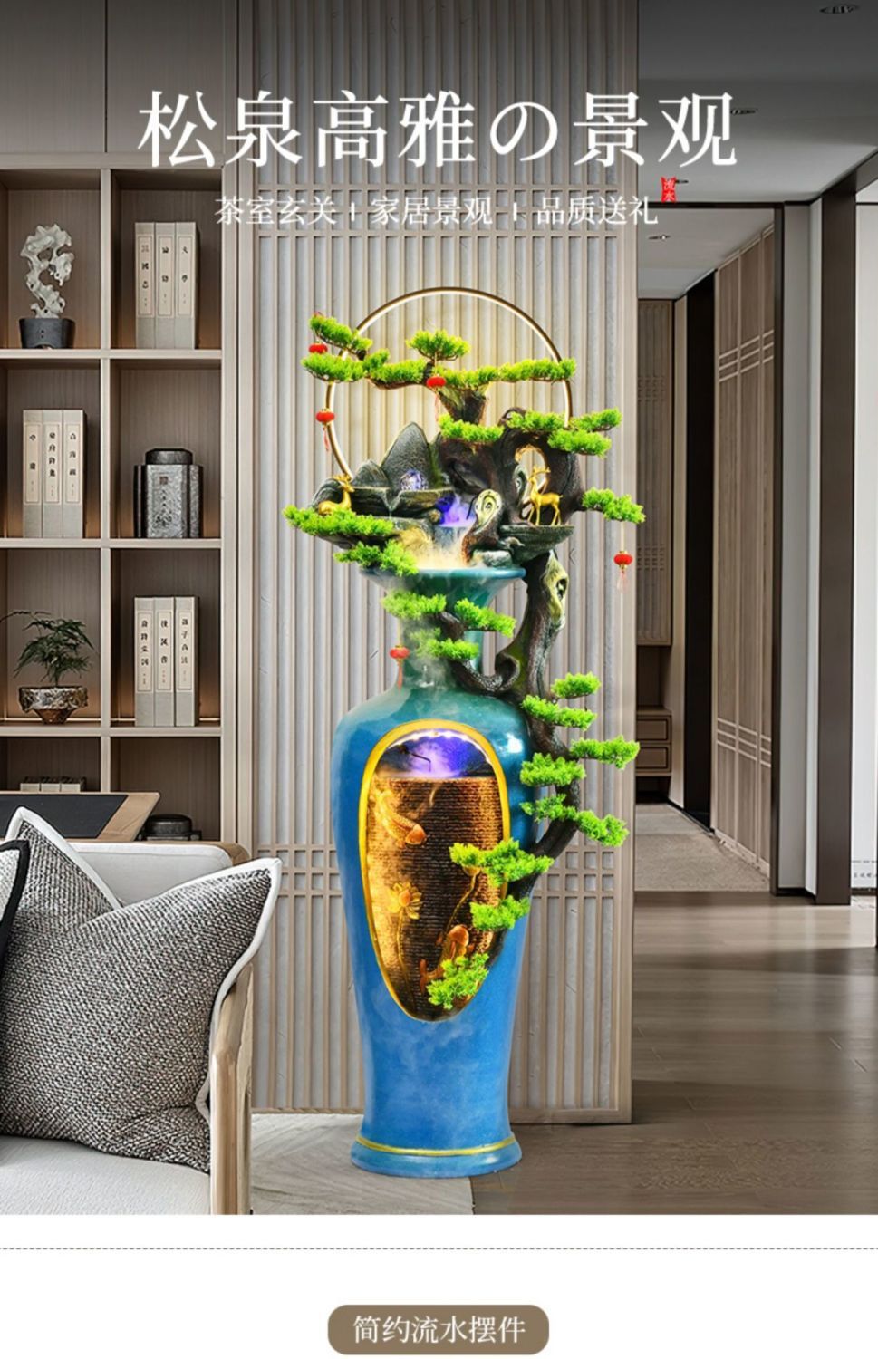 대형 꽃 냄비 물 분수 재산 장식 거실 바닥 순환 물 풍경 홈 오피스 실내 장식스토어 가기