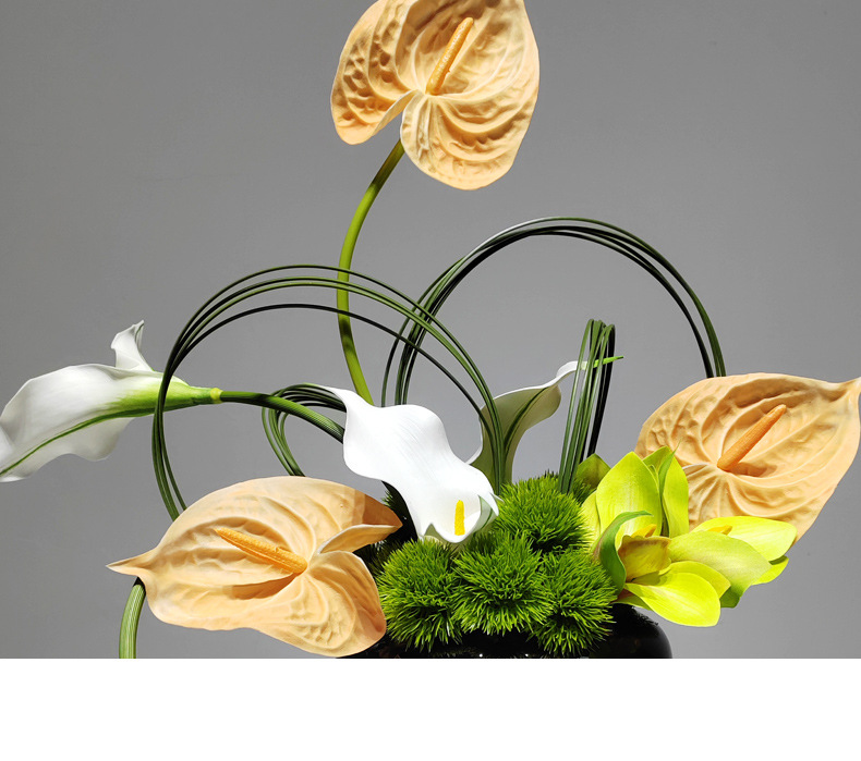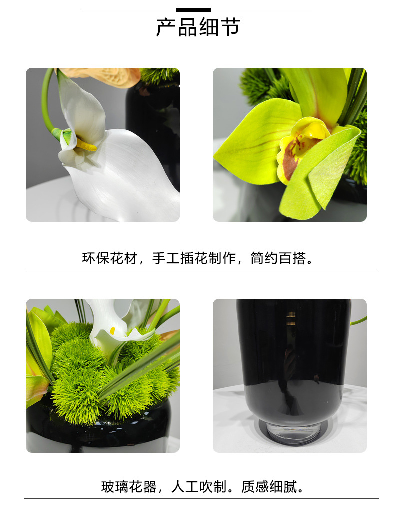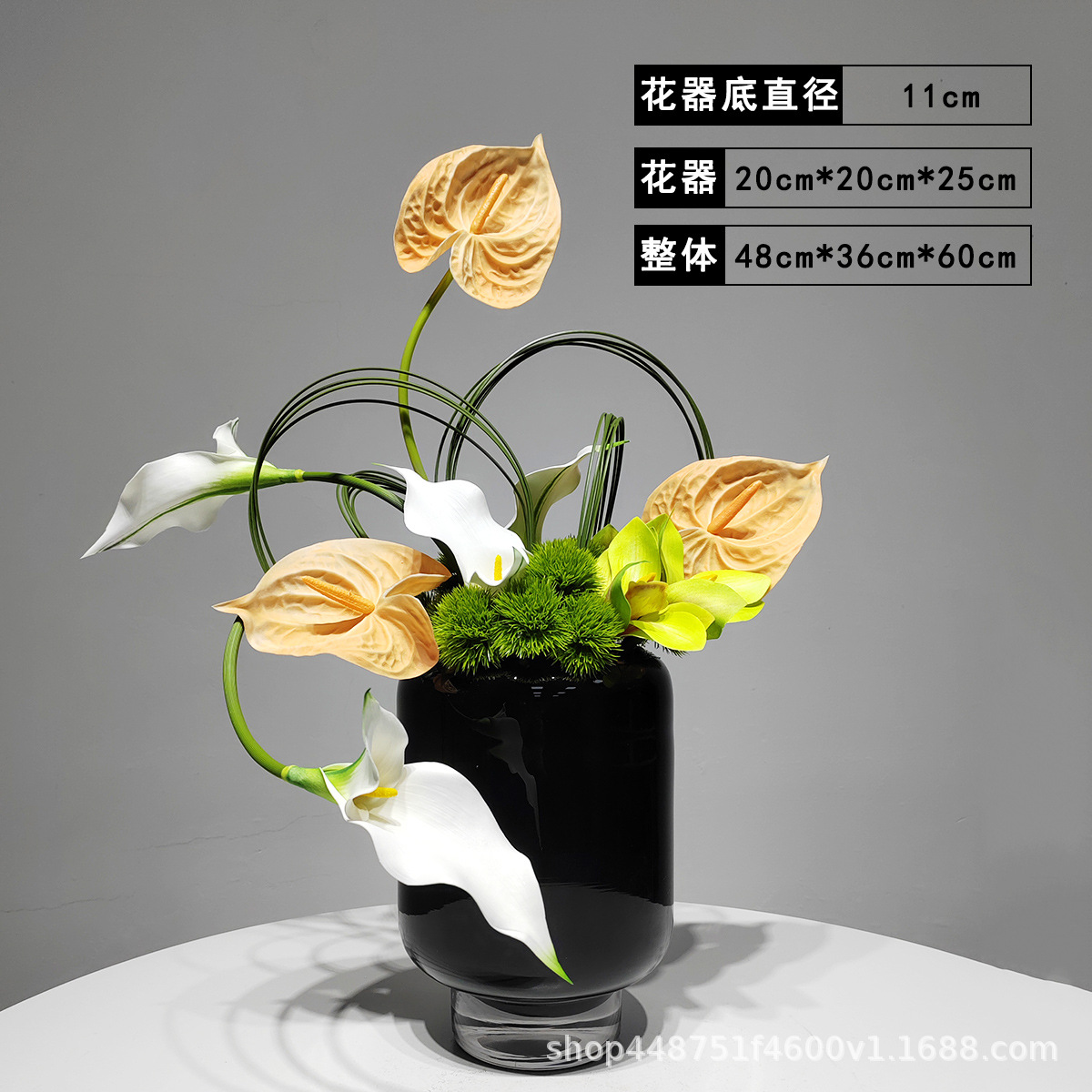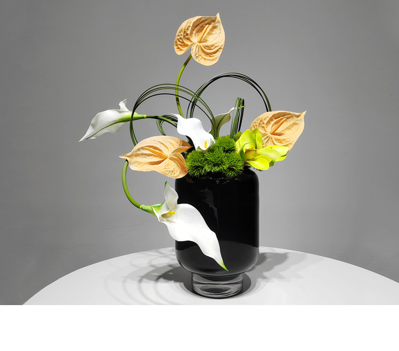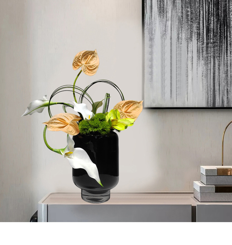 현대 인공 꽃 꽃꽂이 커피 테이블 레스토랑 판매 부서 모델 룸 바탕 화면 빛 고급 가짜 꽃 유리 꽃 장식