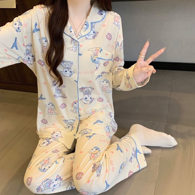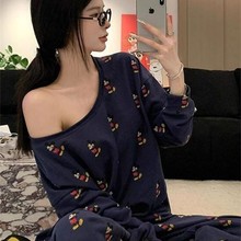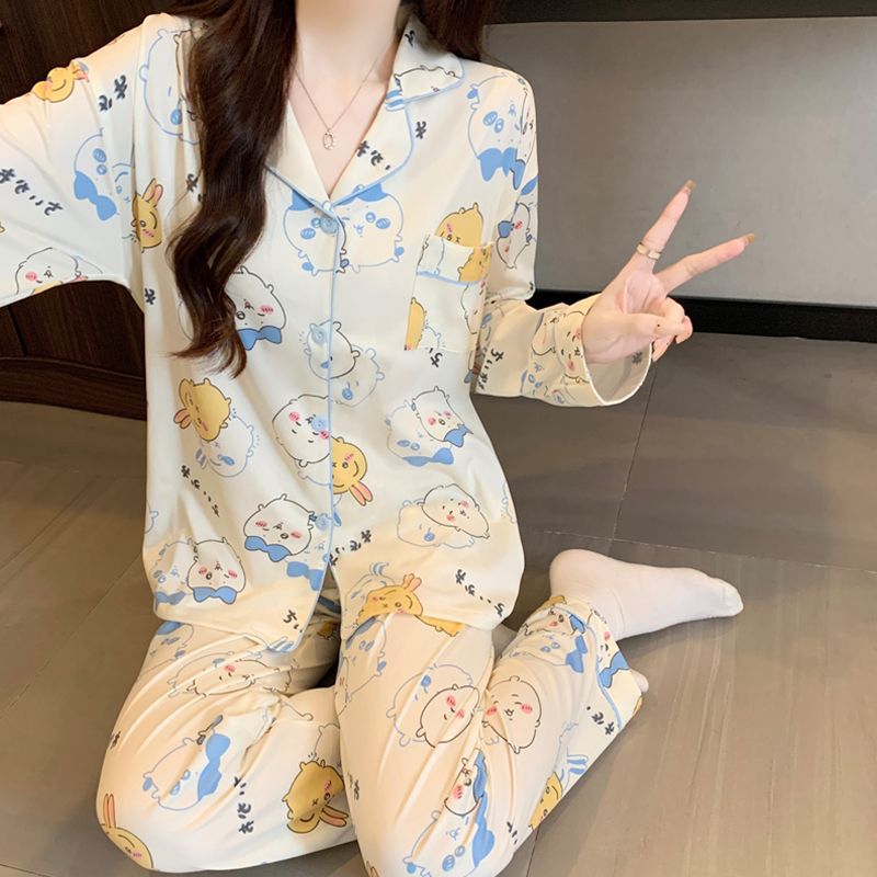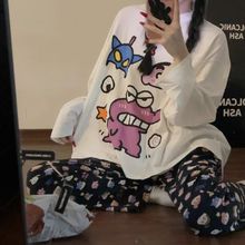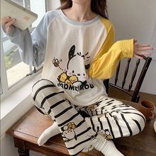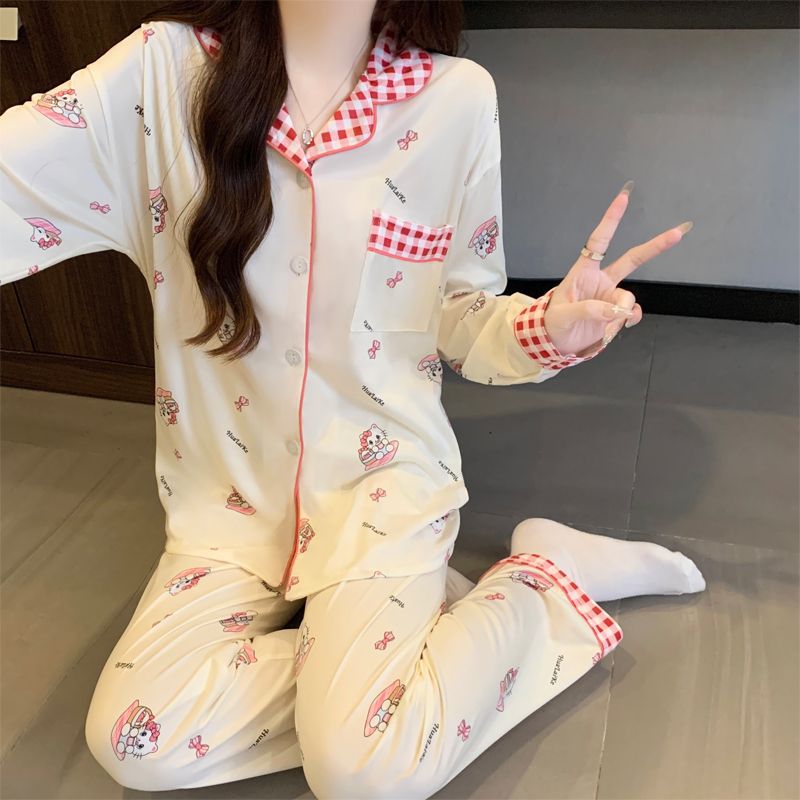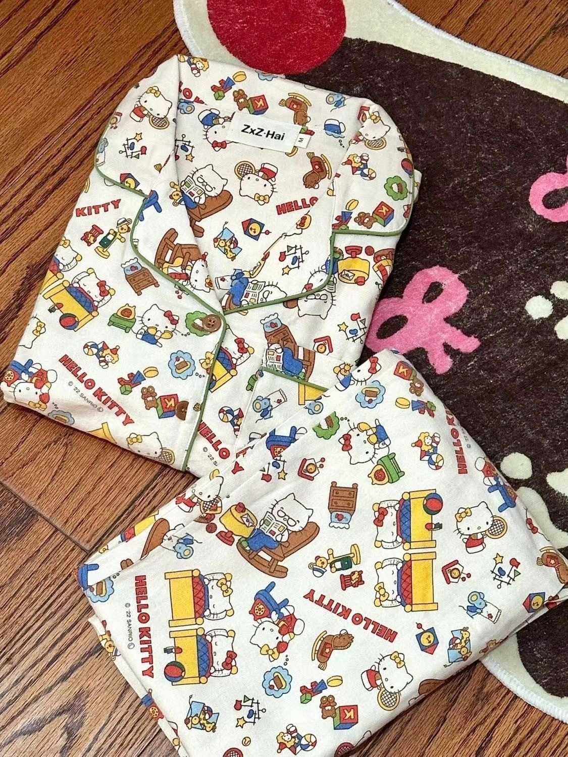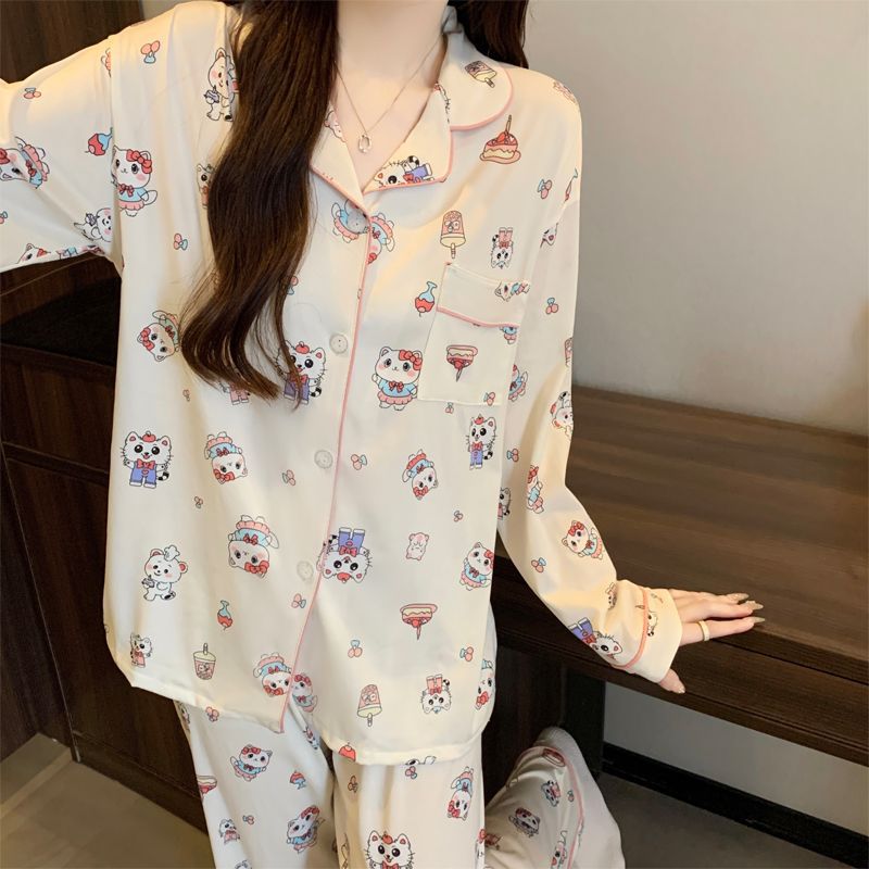 여성을위한 국경 간 ins 스타일 달콤한 헬로 키티 잠옷 봄, 가을 만화 긴팔 바지 홈웨어 세트 드롭 배송스토어 가기