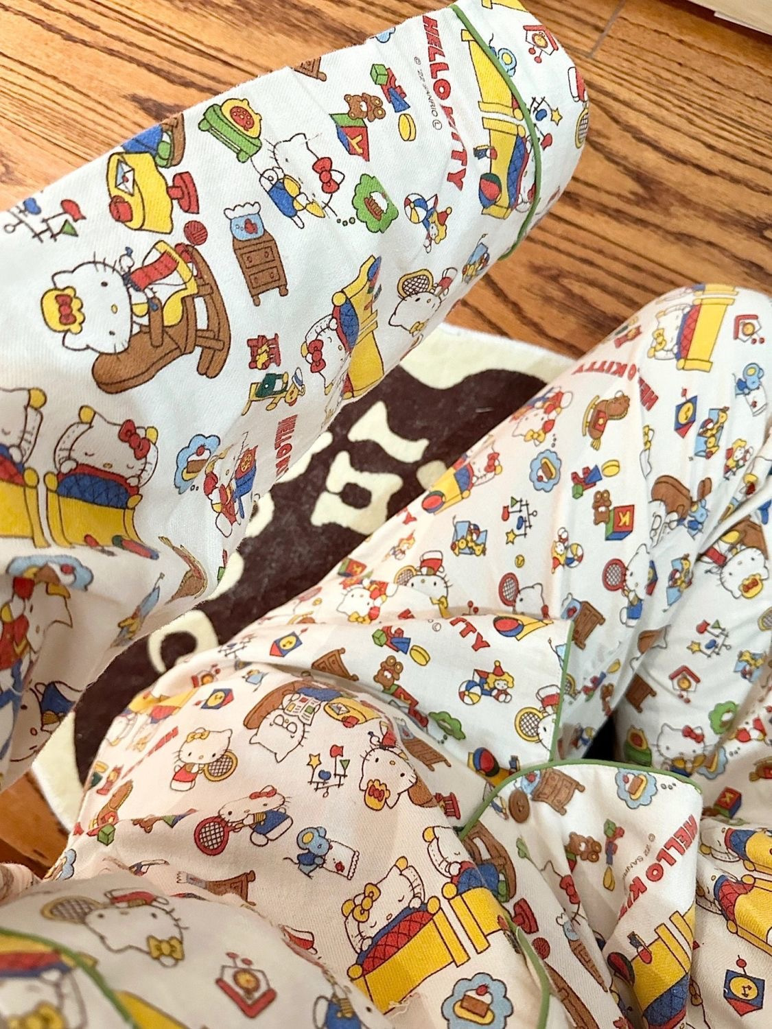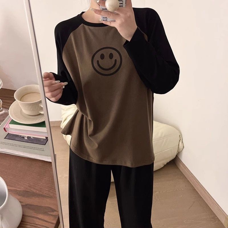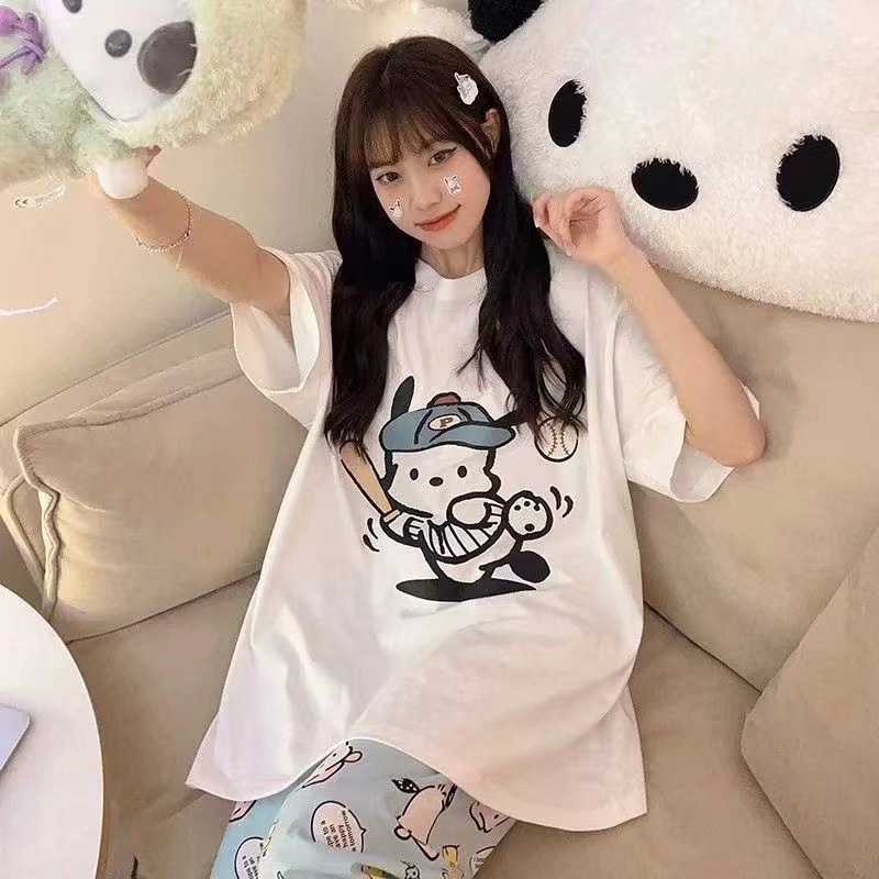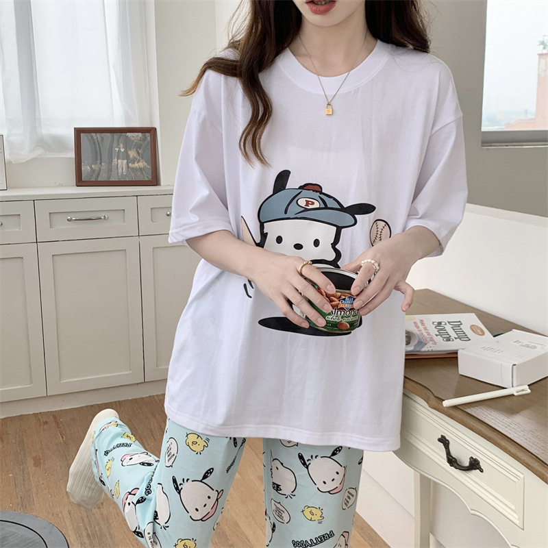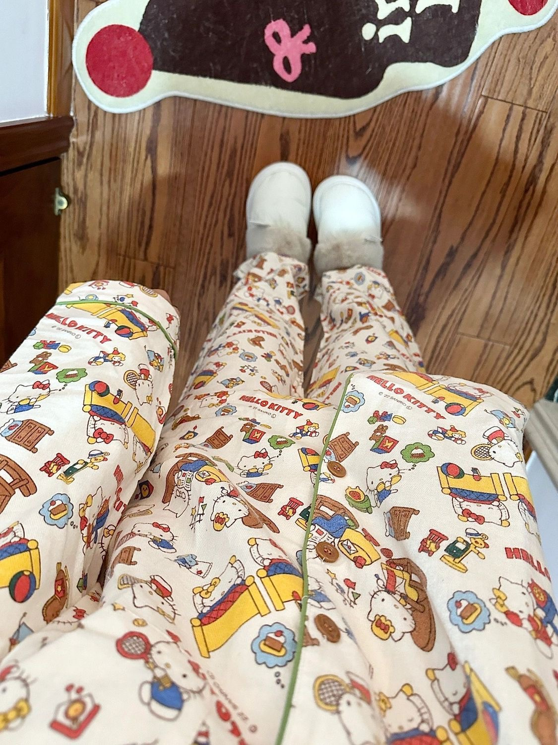 여성을위한 국경 간 ins 스타일 달콤한 헬로 키티 잠옷 봄, 가을 만화 긴팔 바지 홈웨어 세트 드롭 배송스토어 가기