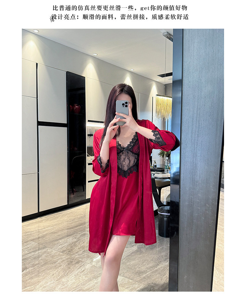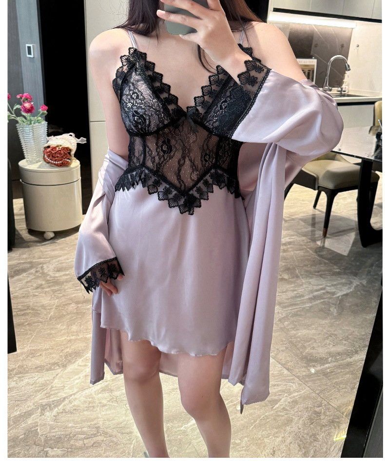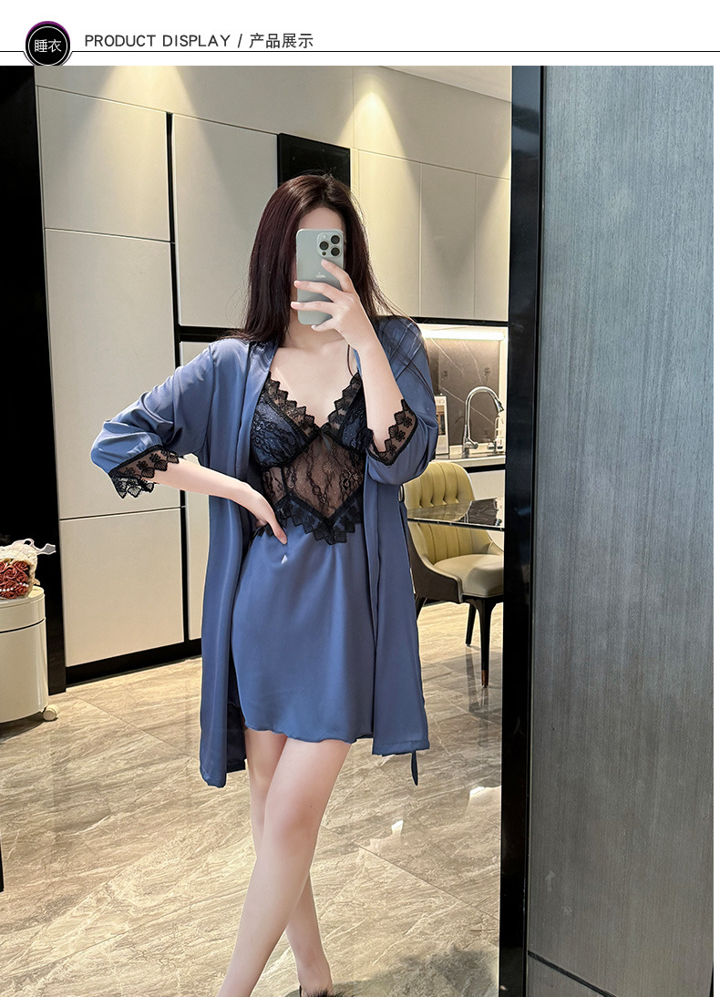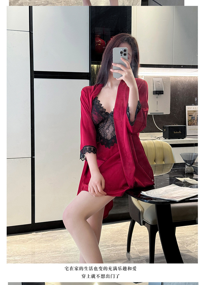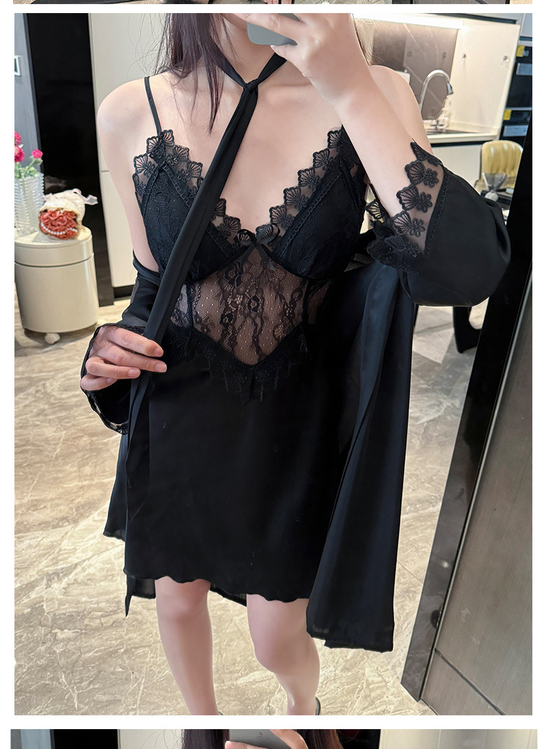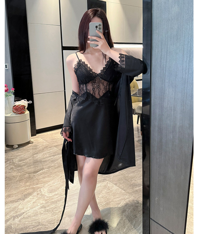 섹시한 순수한 정욕 스타일 봄과 여름 얇은 얼음 실크 잠옷 유방 패드 유혹 서스펜더 깊은 v 넥 레이스 새틴 잠옷 여성을위한스토어 가기