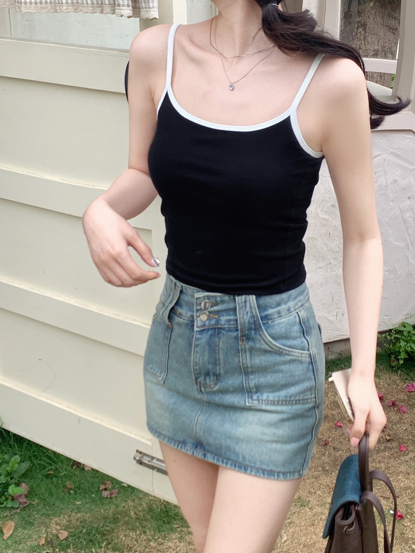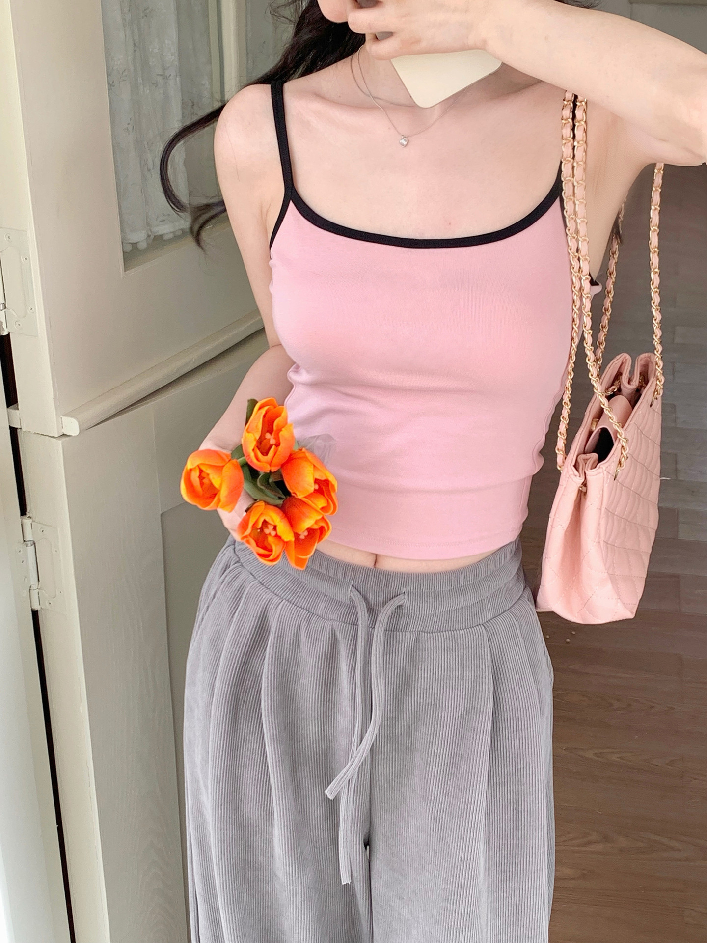순수한 욕망 뜨거운 소녀 대조 색상 서스펜더 순수 코튼 아름다운 다시 조끼 올인원 유방 패드 감싸 인 가슴 겉옷 바닥 짧은 탑스토어 가기