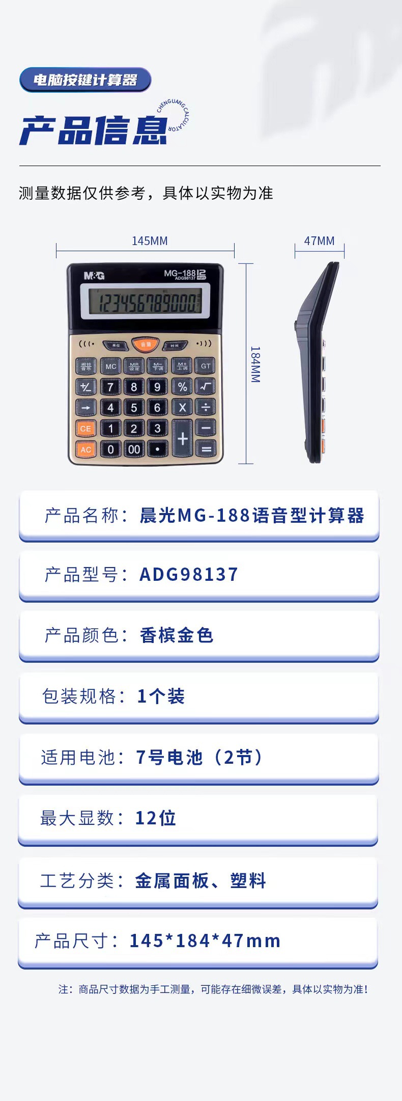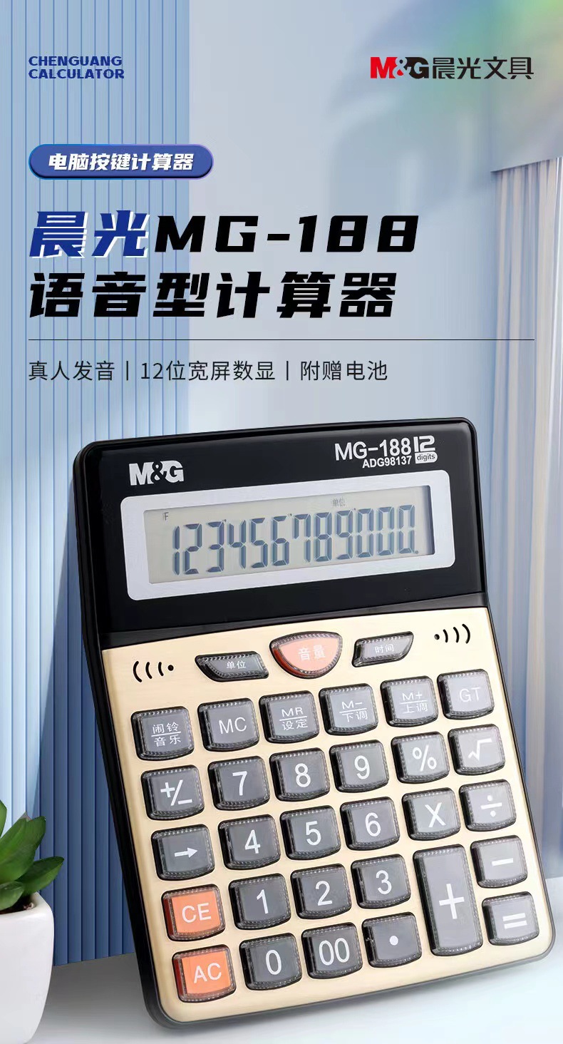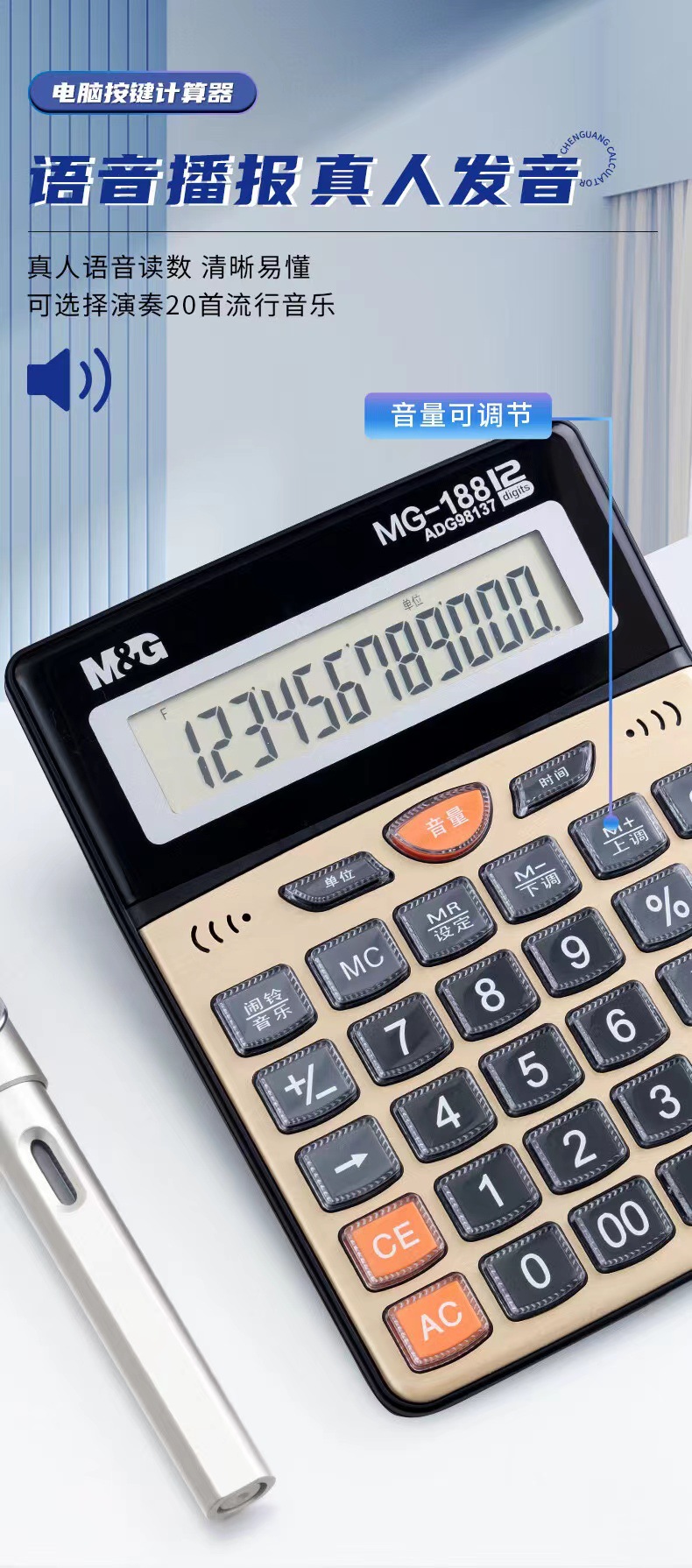 M & G 98137 음성 계산기 금융 상용 컴퓨터 대형 다기능 대형 버튼 12 비트 대형 화면