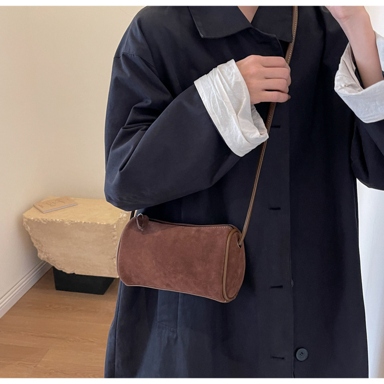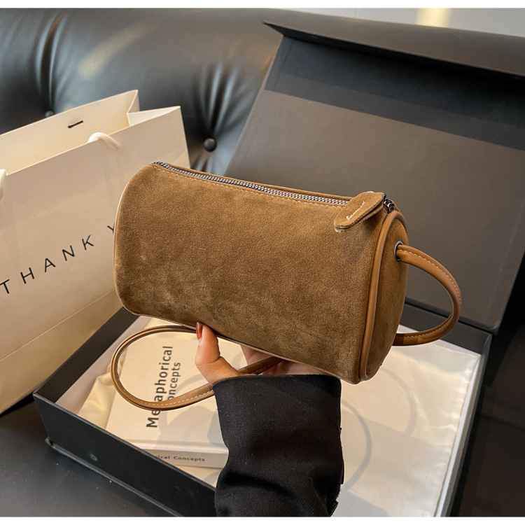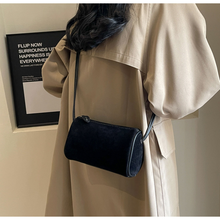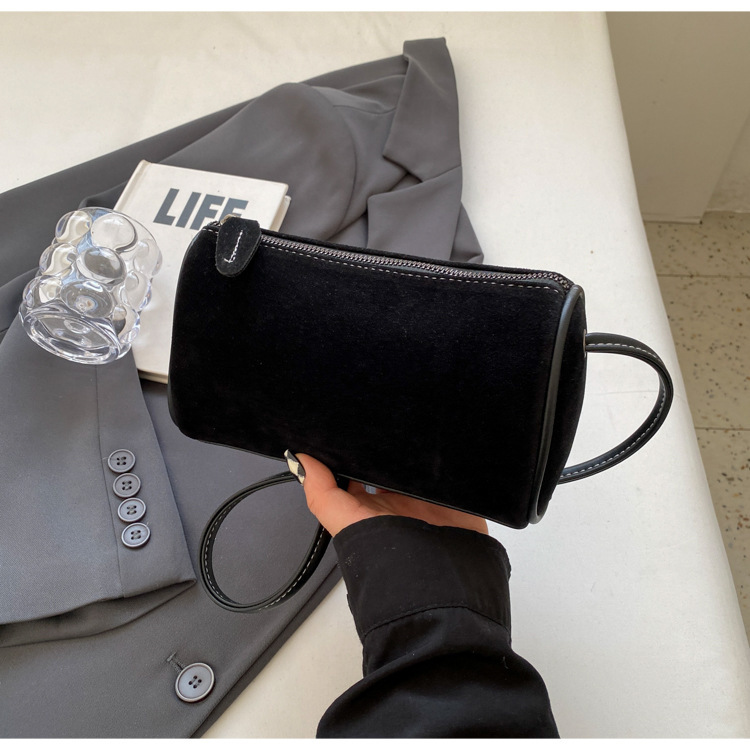 올해 인기있는 보스턴 가방 가을과 겨울 올 매칭 2023 새로운 틈새 디자인 메신저 가방 여성의 서리 실린더 가방