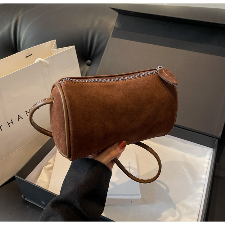 올해 인기있는 보스턴 가방 가을과 겨울 올 매칭 2023 새로운 틈새 디자인 메신저 가방 여성의 서리 실린더 가방스토어 가기