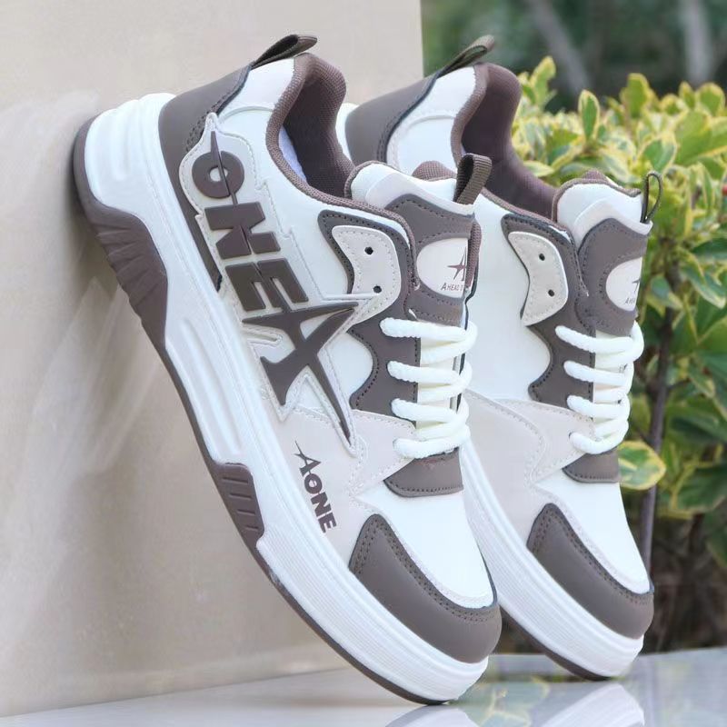 2025년 봄 신상 남성용 니치 브라운 스니커즈, 남학생용 중간 높이 내마모성 두꺼운 밑창 소가죽 밑창 운동화