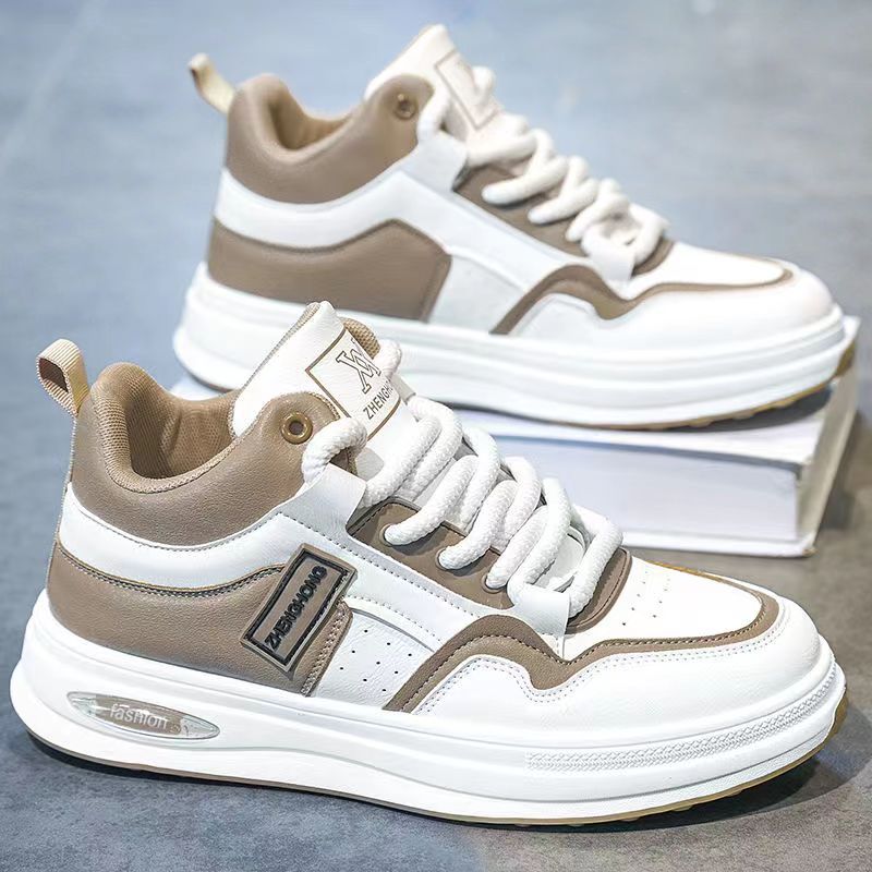2025년 봄 신상 남성용 니치 브라운 스니커즈, 남학생용 중간 높이 내마모성 두꺼운 밑창 소가죽 밑창 운동화스토어 가기