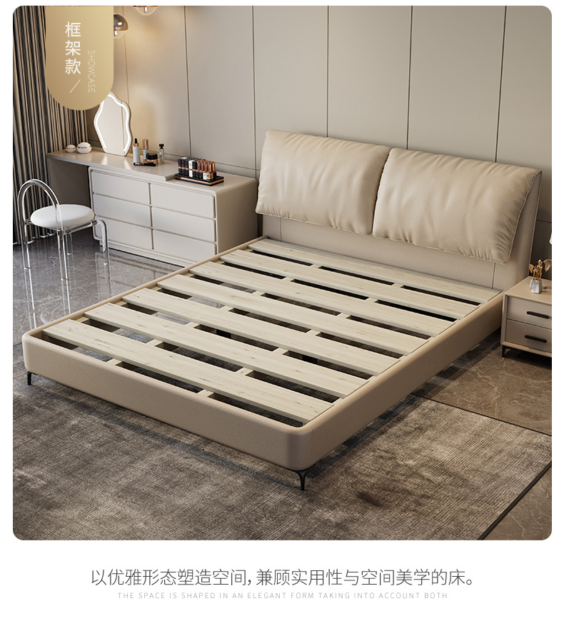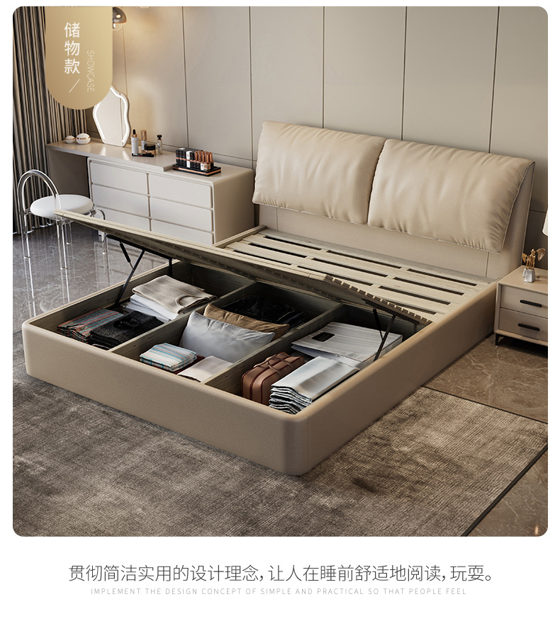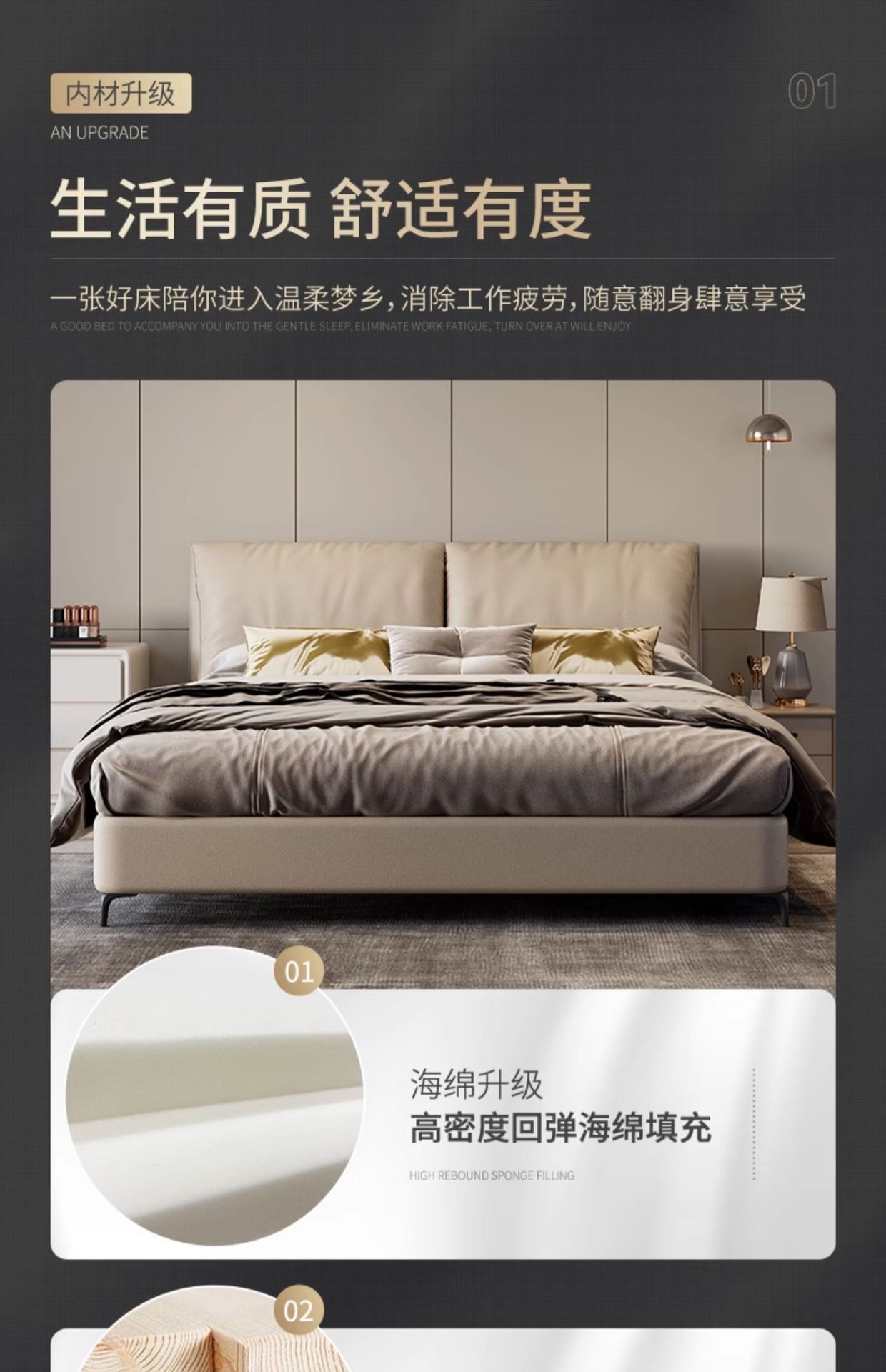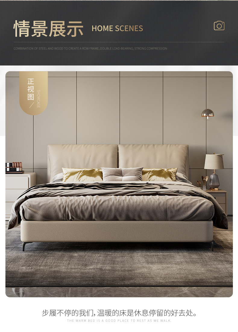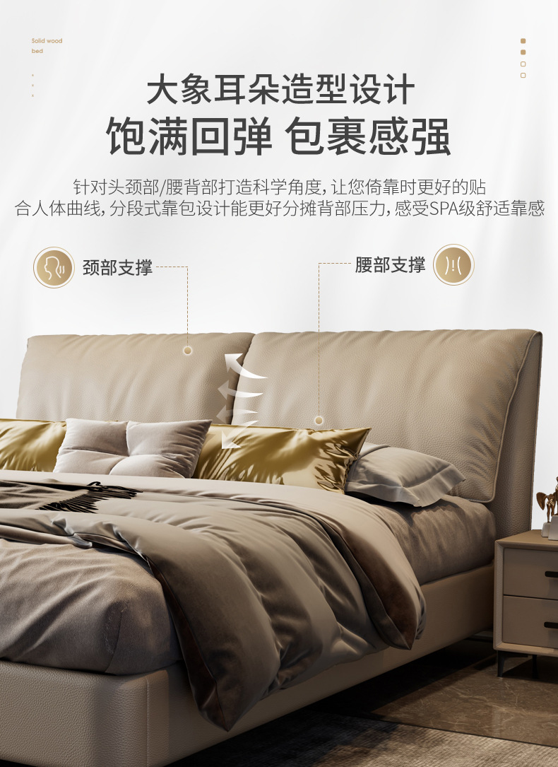 코끼리 귀 가죽 침대 현대 간단한 단단한 나무 침대 마스터 침실 침대 더블 침대 웨딩 침대 가죽 침대 퀸 침대 서스펜션 침대스토어 가기
