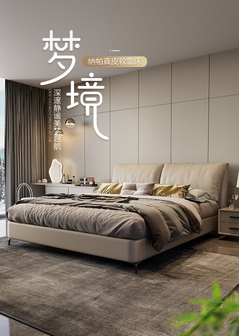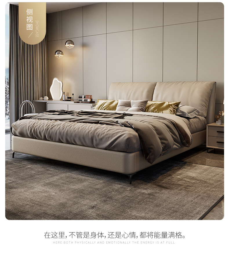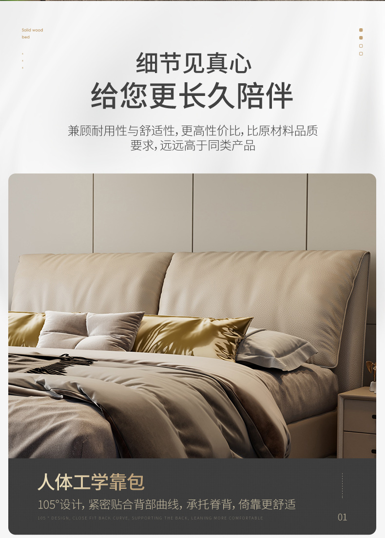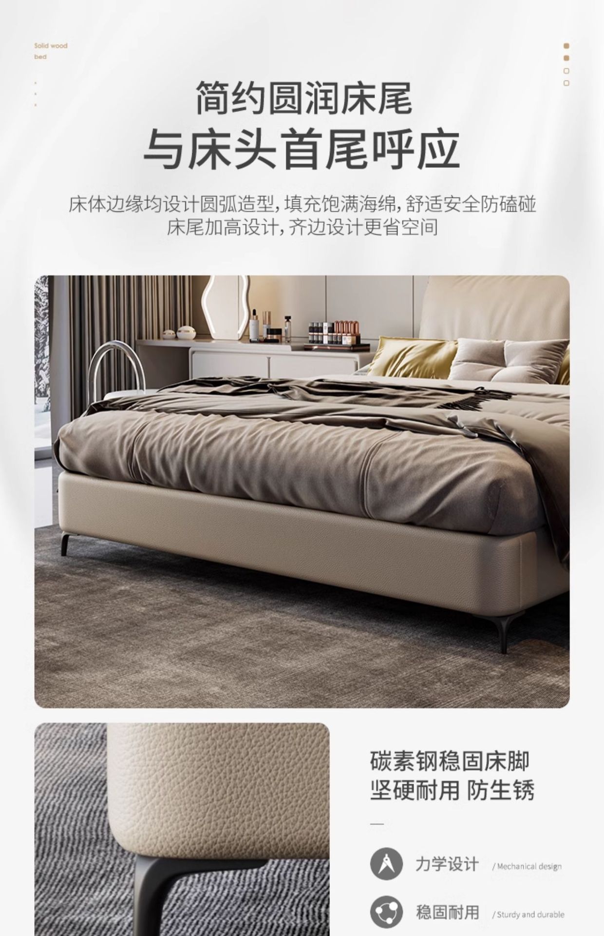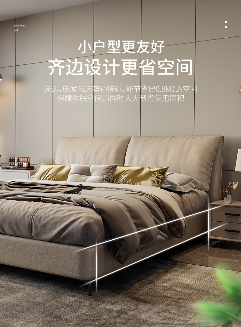 코끼리 귀 가죽 침대 현대 간단한 단단한 나무 침대 마스터 침실 침대 더블 침대 웨딩 침대 가죽 침대 퀸 침대 서스펜션 침대스토어 가기