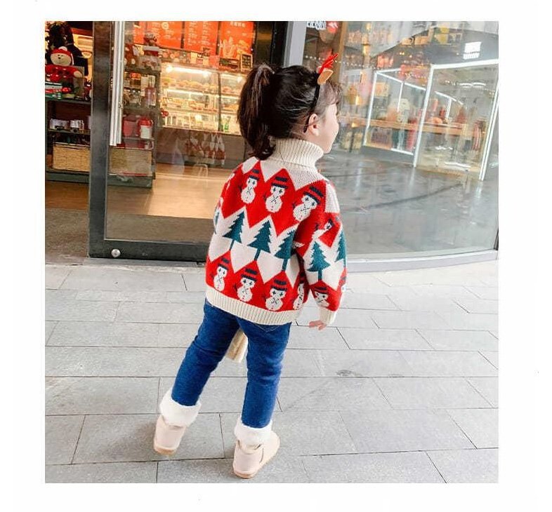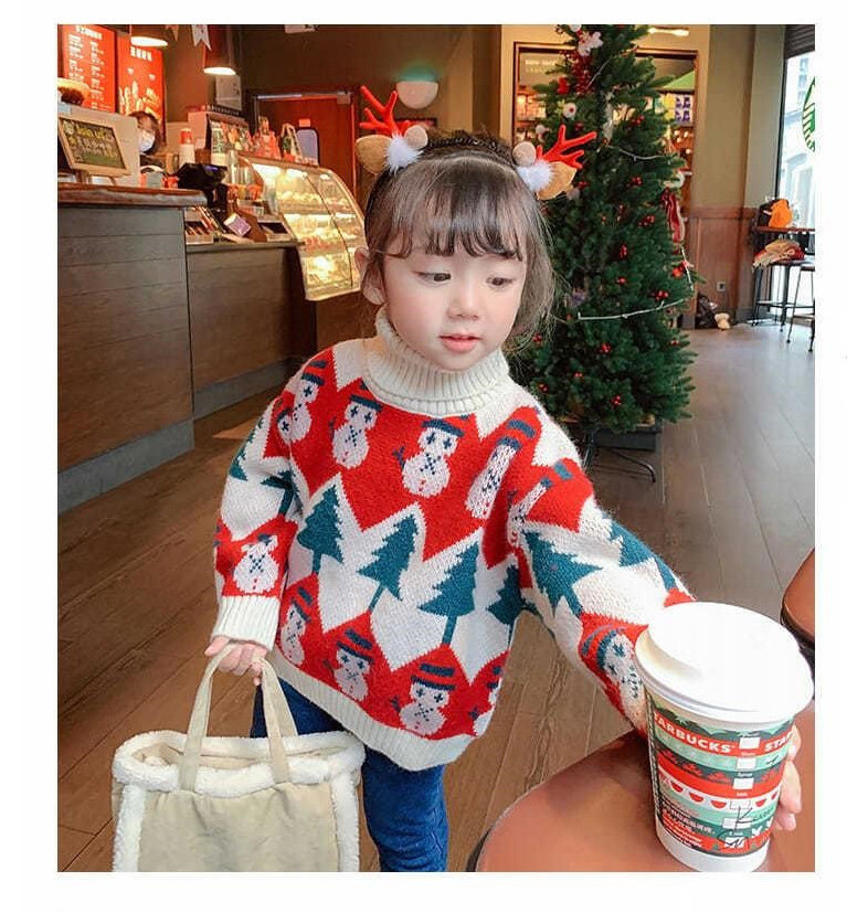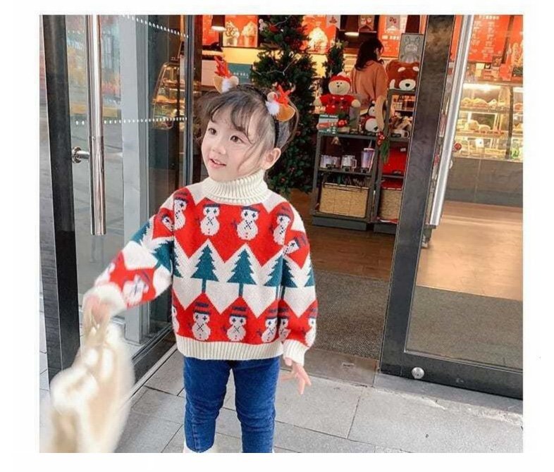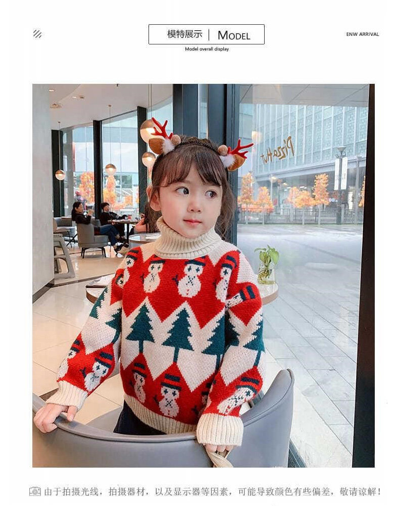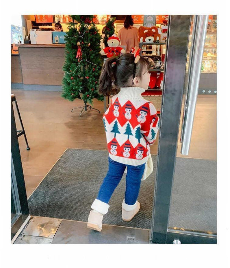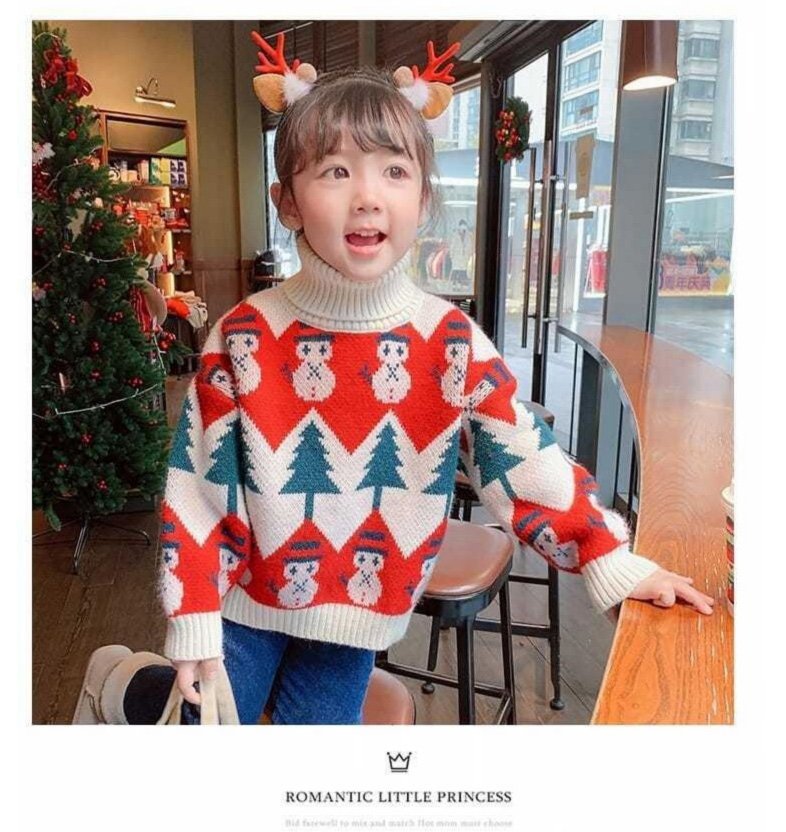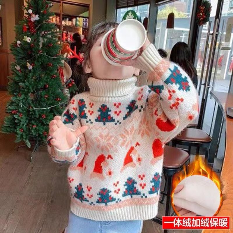여자 가을, 겨울 크리스마스 스웨터 2025 새로운 어린이 터틀넥 스웨터 아기 겨울 탑 어린이 유행스토어 가기