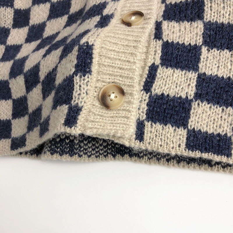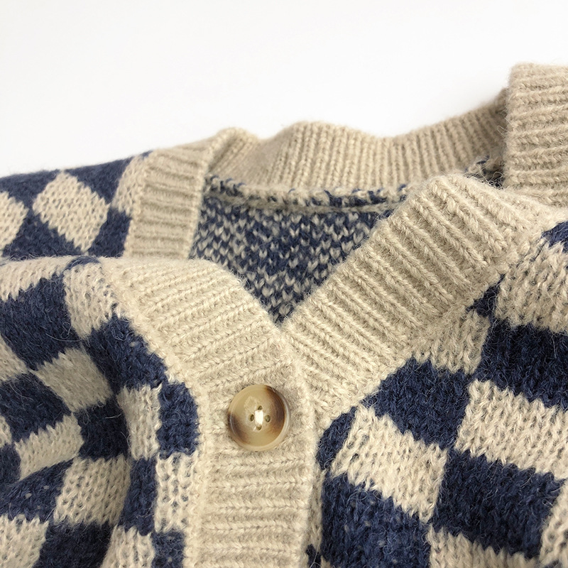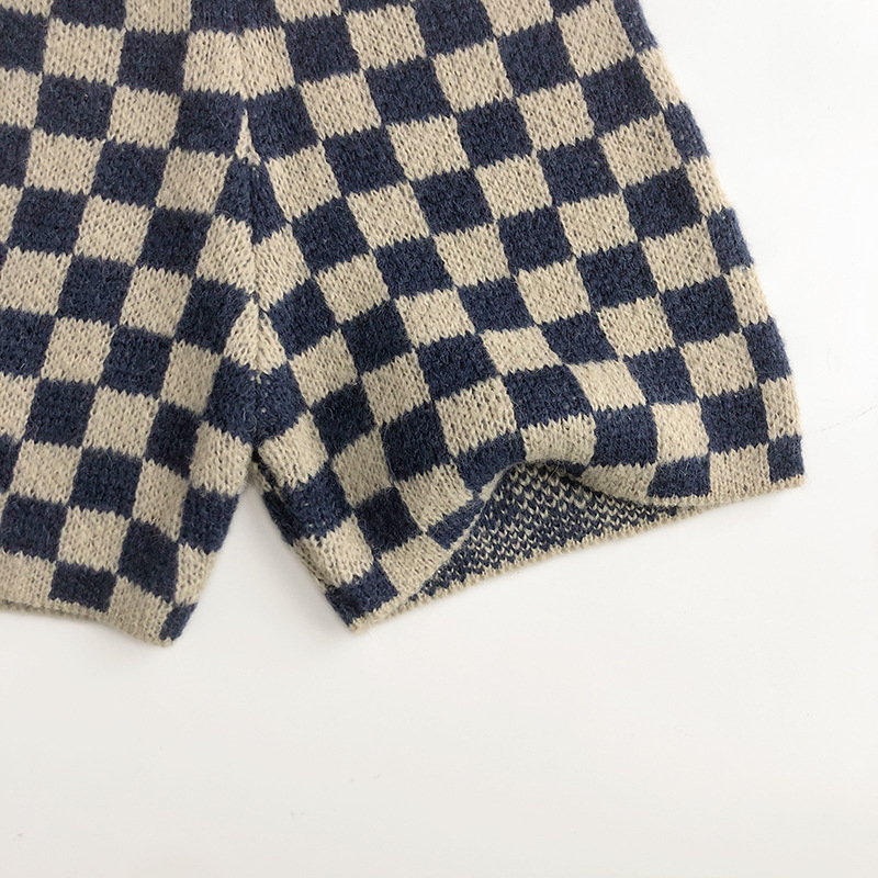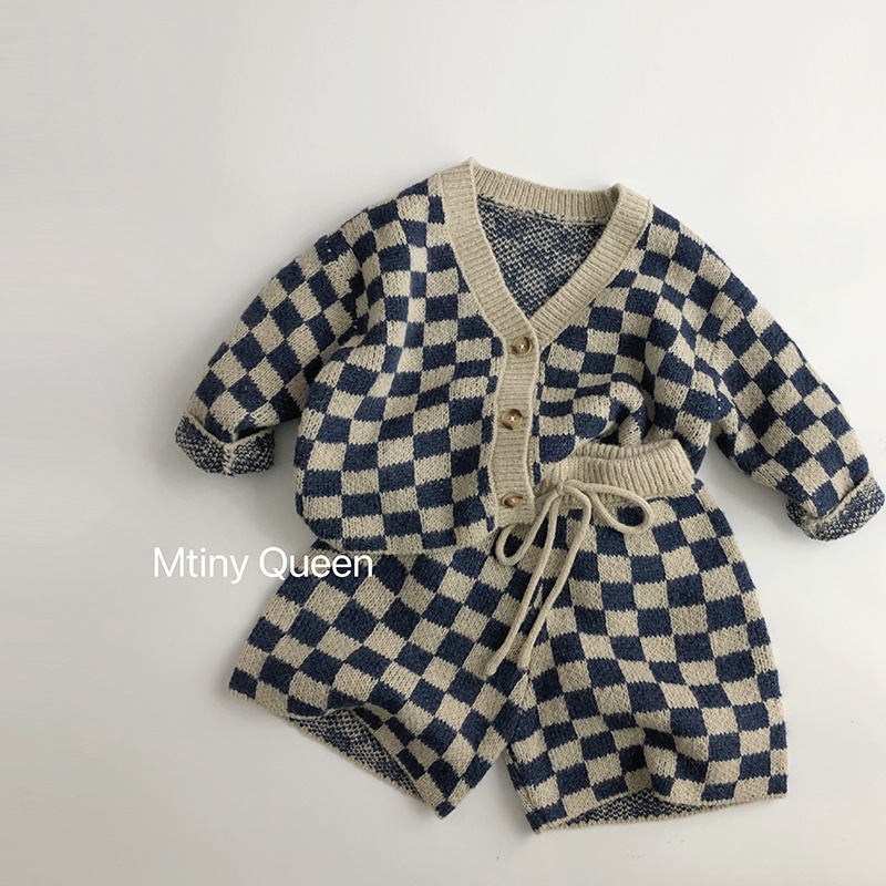 북유럽 스타일 ~ 봄 가을 어린이 스웨터 바둑판 카디건 서양식 남녀 조수 보물 니트 반바지 세트 센스토어 가기