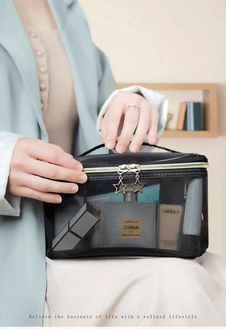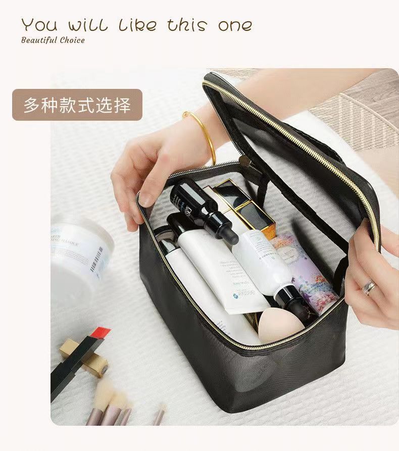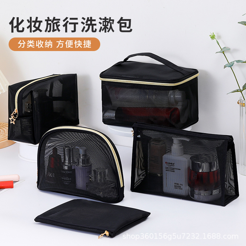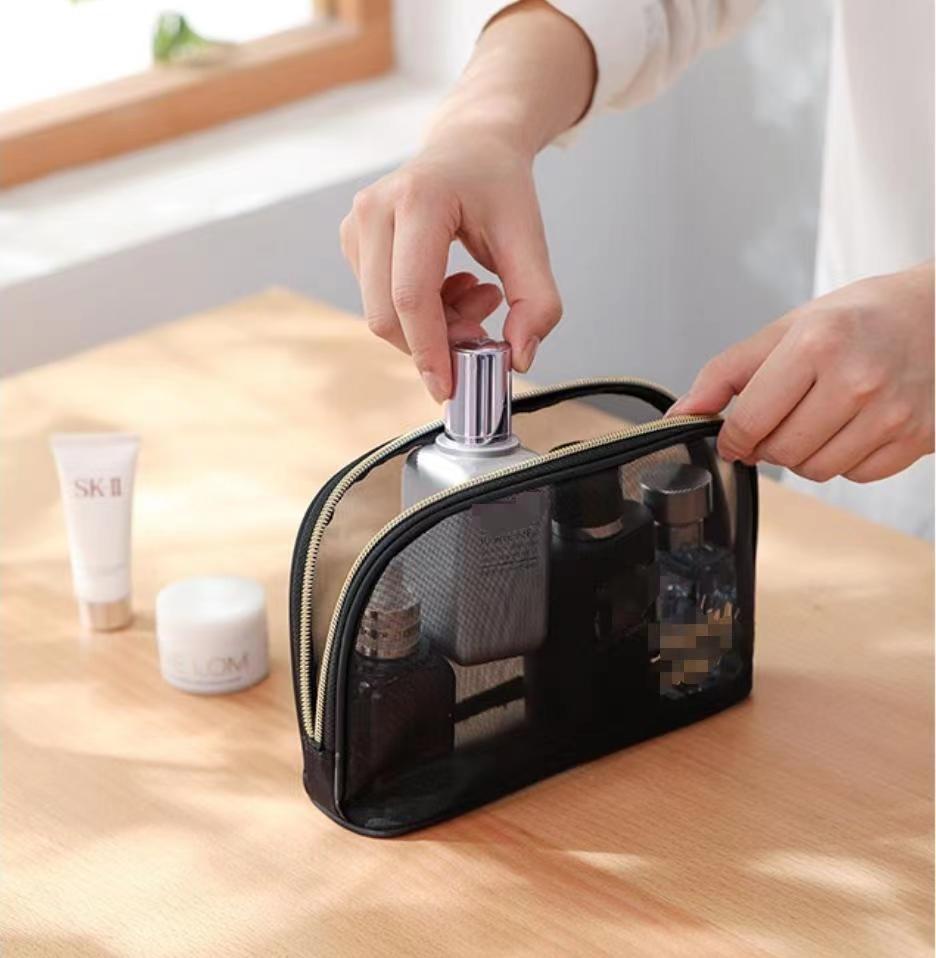 메쉬 휴대용 화장품 가방 여성 여행 투명 워시 백 스킨 케어 제품 립스틱 아이 섀도우 브러쉬 보관 가방 고급스토어 가기
