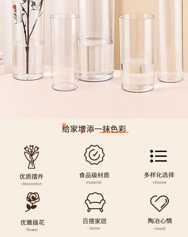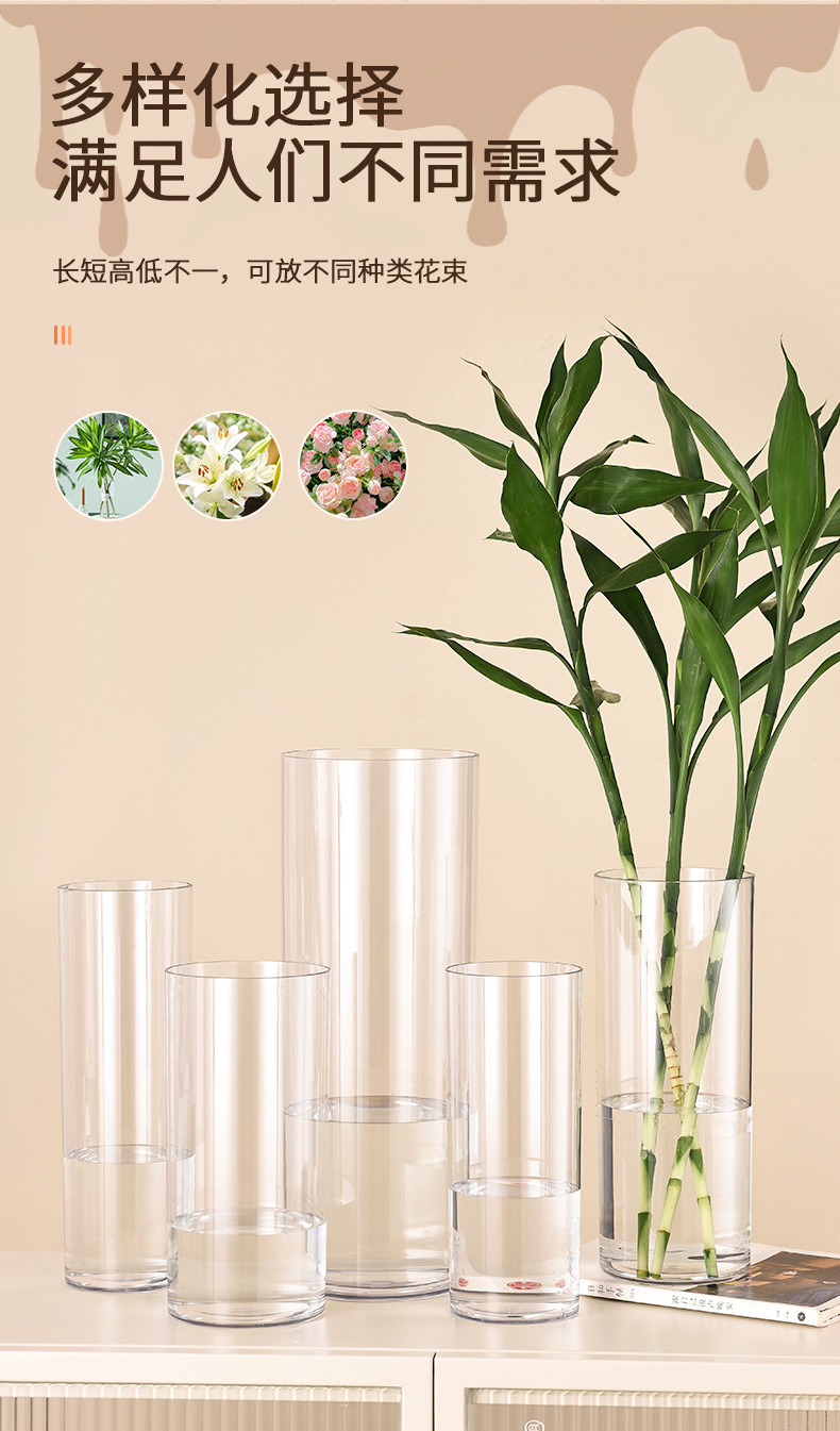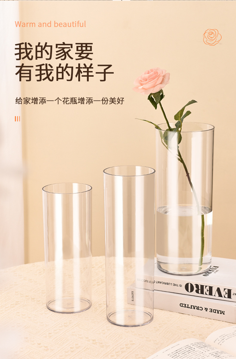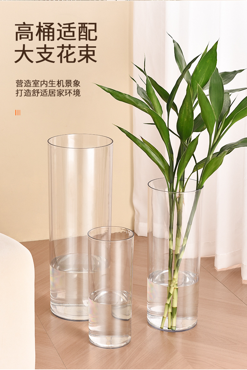 높은 투명 시뮬레이션 유리 플라스틱 꽃병 식품 등급 꽃꽂이 플라스틱 꽃병 높은 감각 식물 수경 도자기스토어 가기