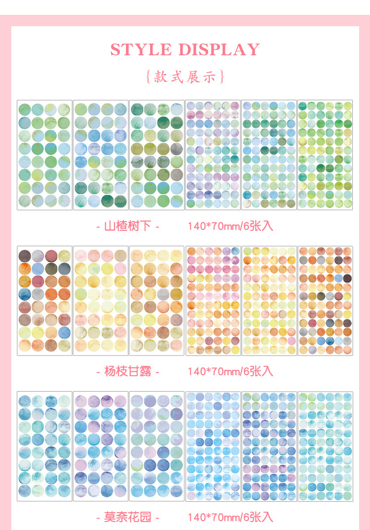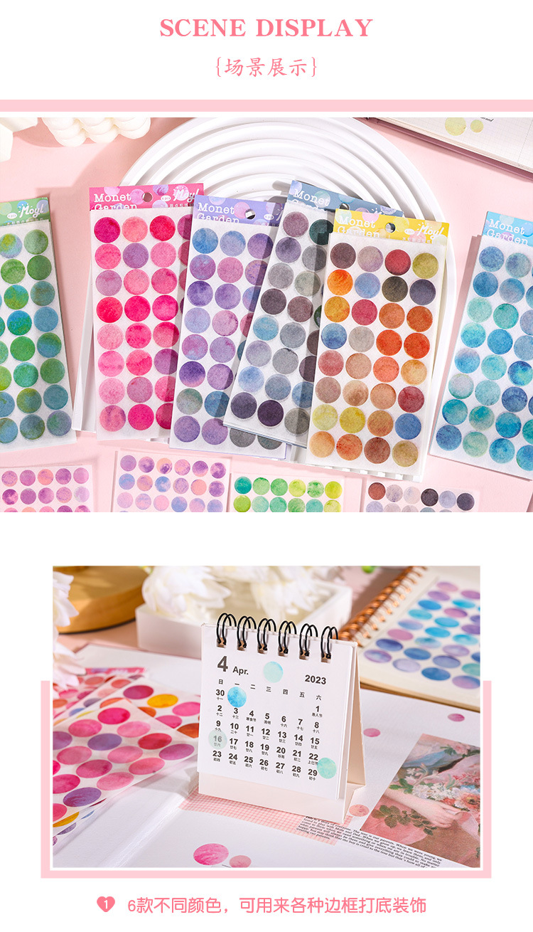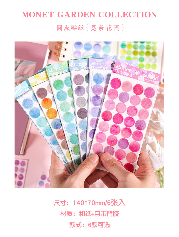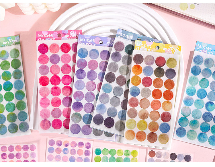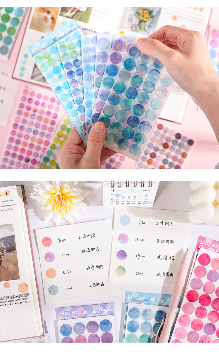 모네 타임 시리즈 저널 스티커 창조적 인 귀여운 둥근 구 플레이트 그라디언트 작은 스티커 goo 카드 장식 재료 스티커스토어 가기