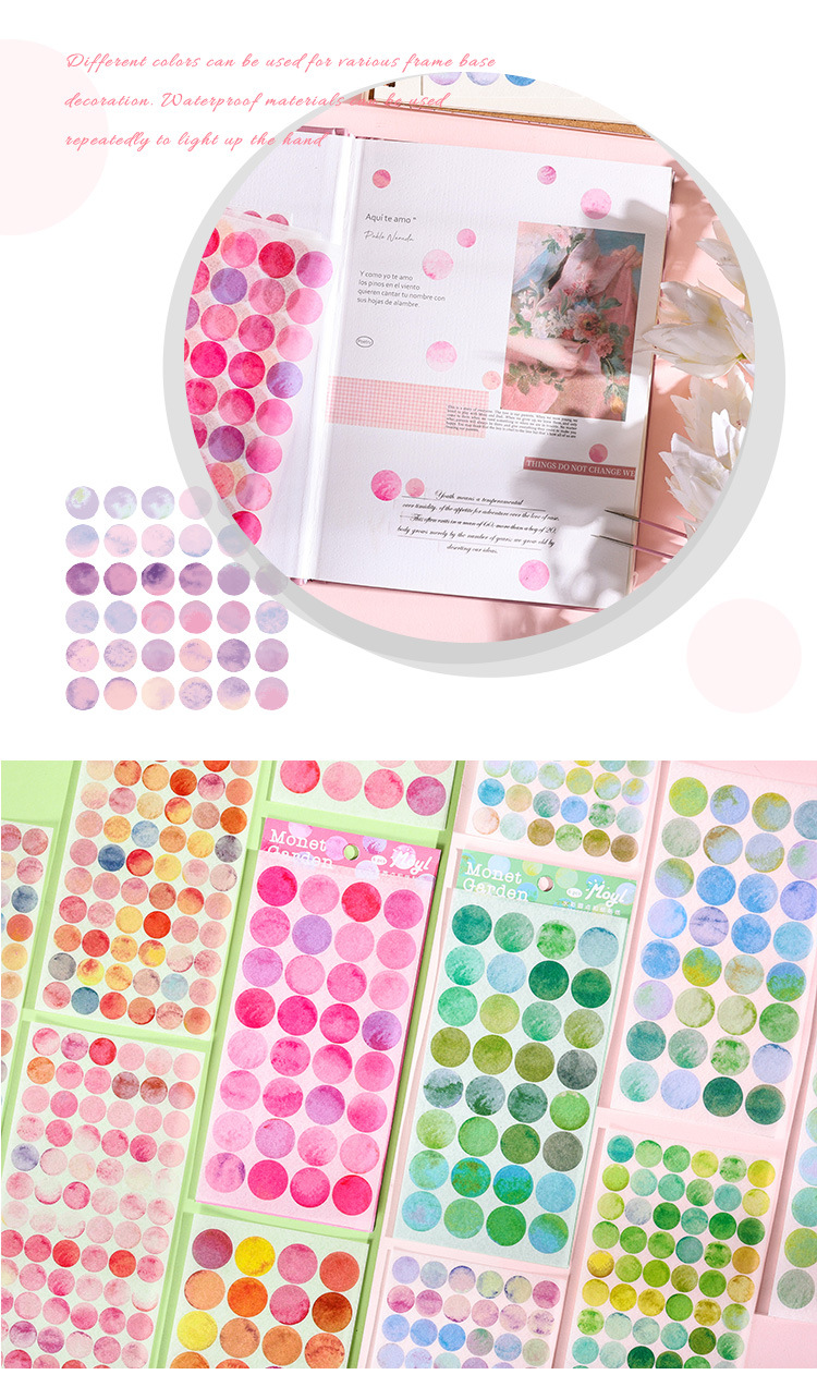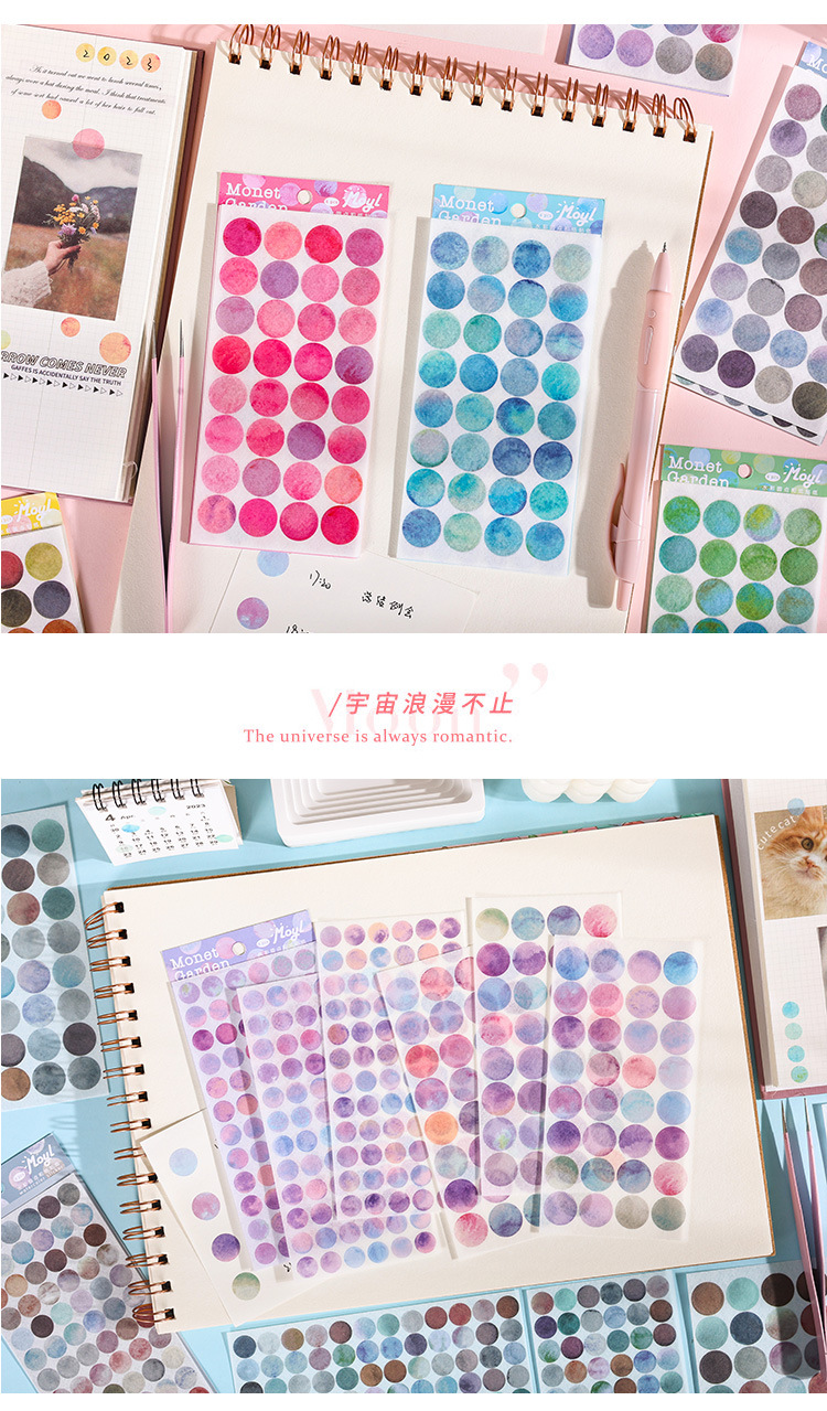 모네 타임 시리즈 저널 스티커 창조적 인 귀여운 둥근 구 플레이트 그라디언트 작은 스티커 goo 카드 장식 재료 스티커