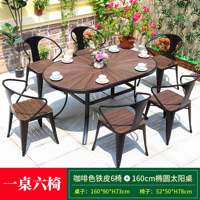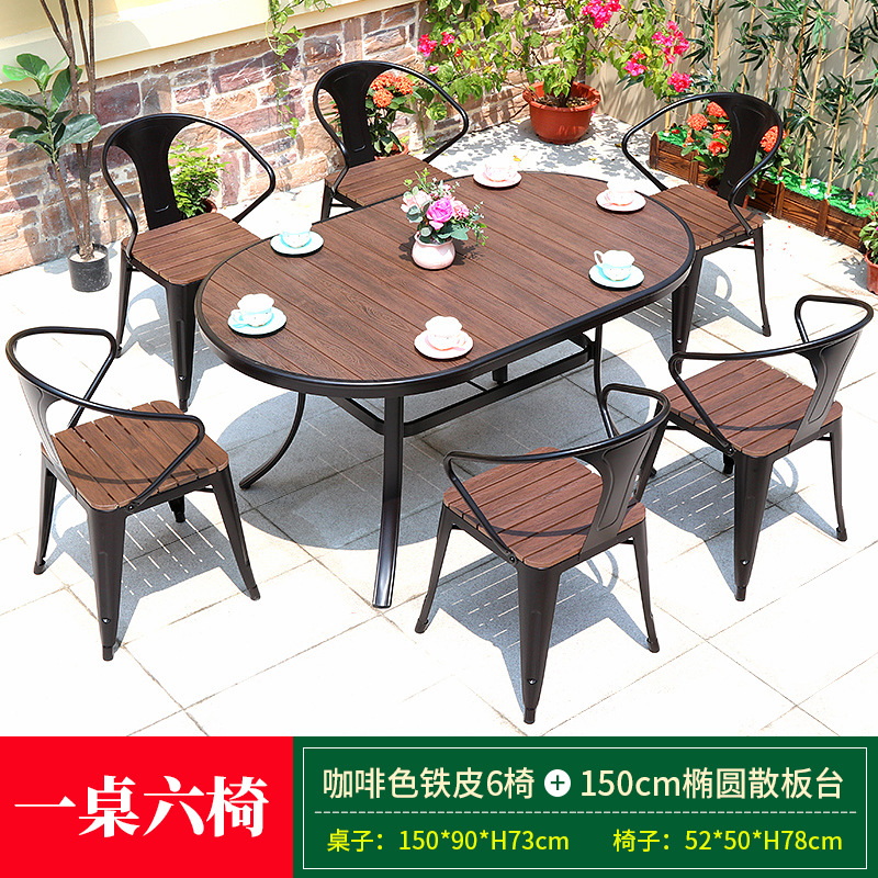 • 브라운 아이언 체어 6개 + 160cm 타원형 선 테이블