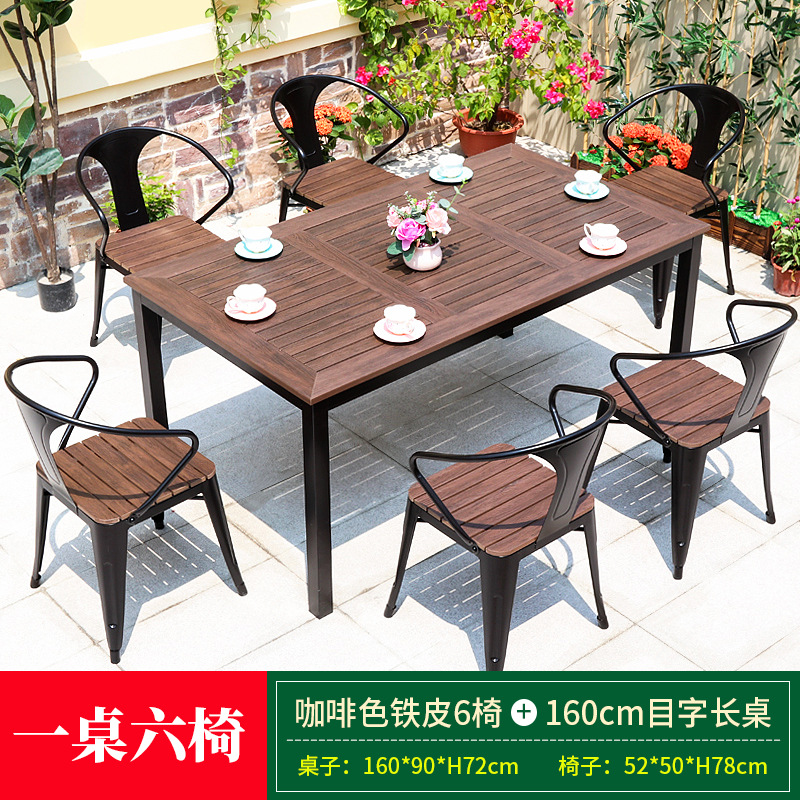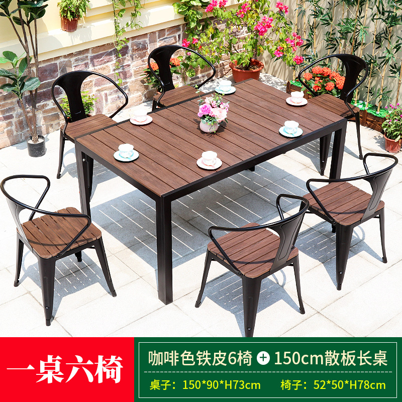 • 브라운 철판 의자 6개 + 150cm 길이의 테이블