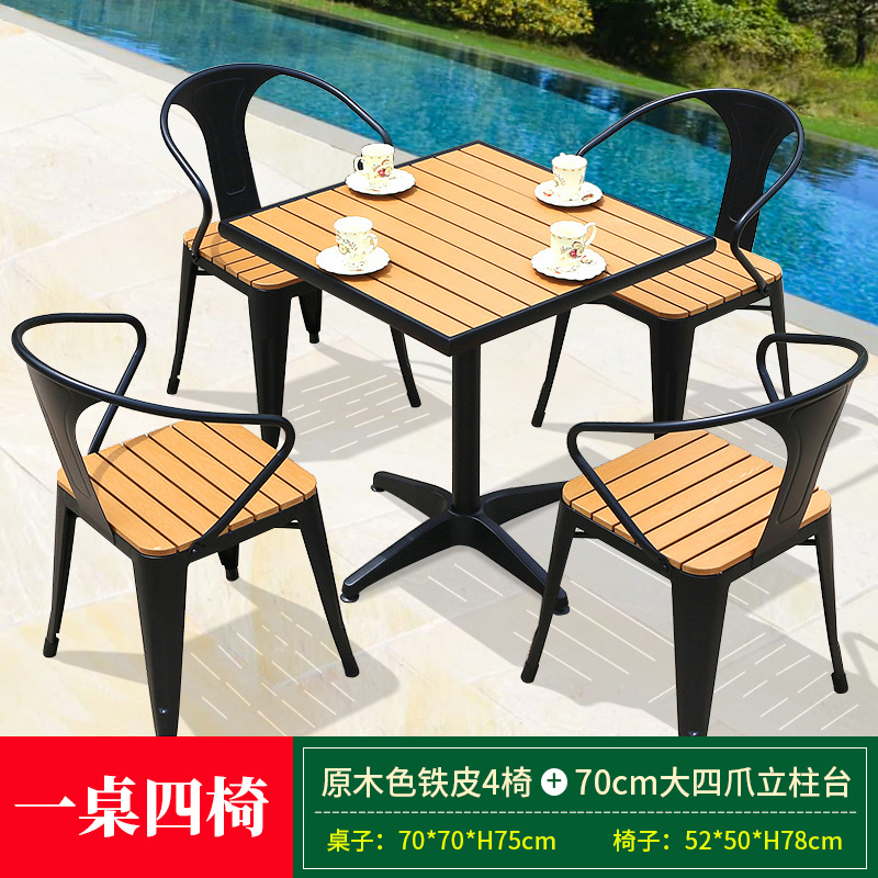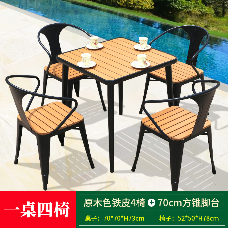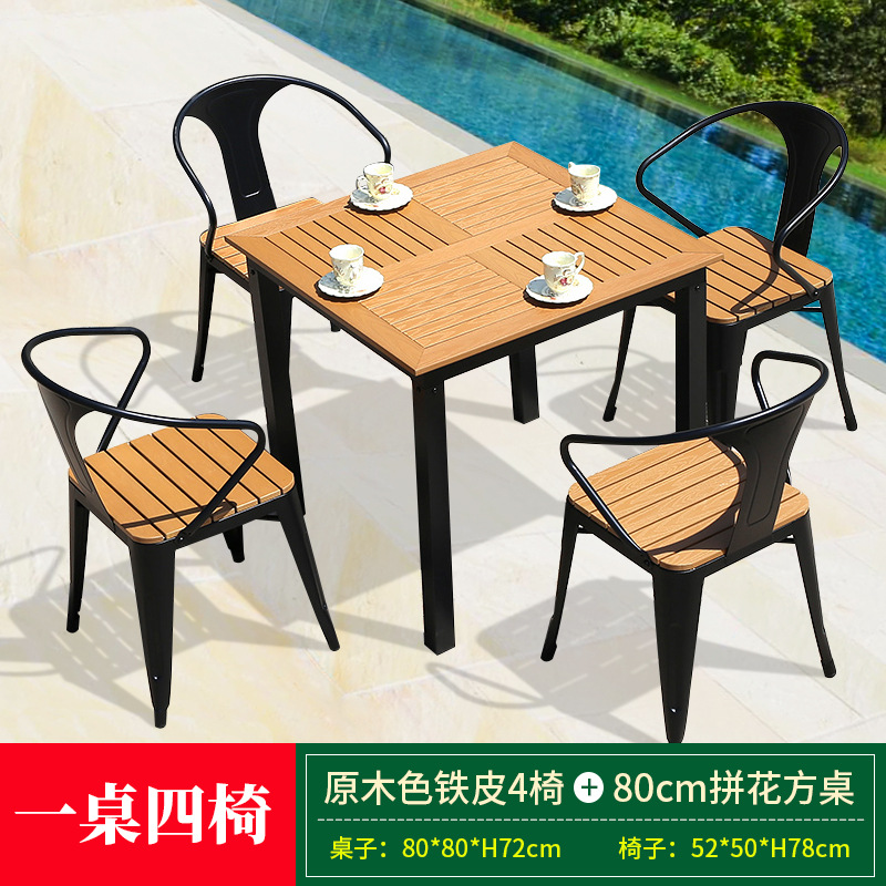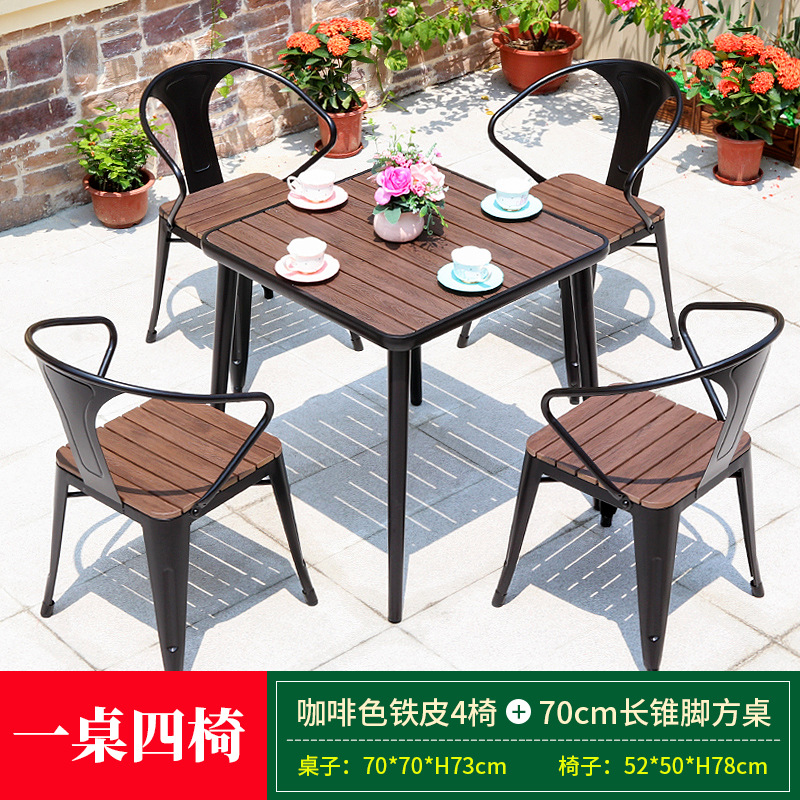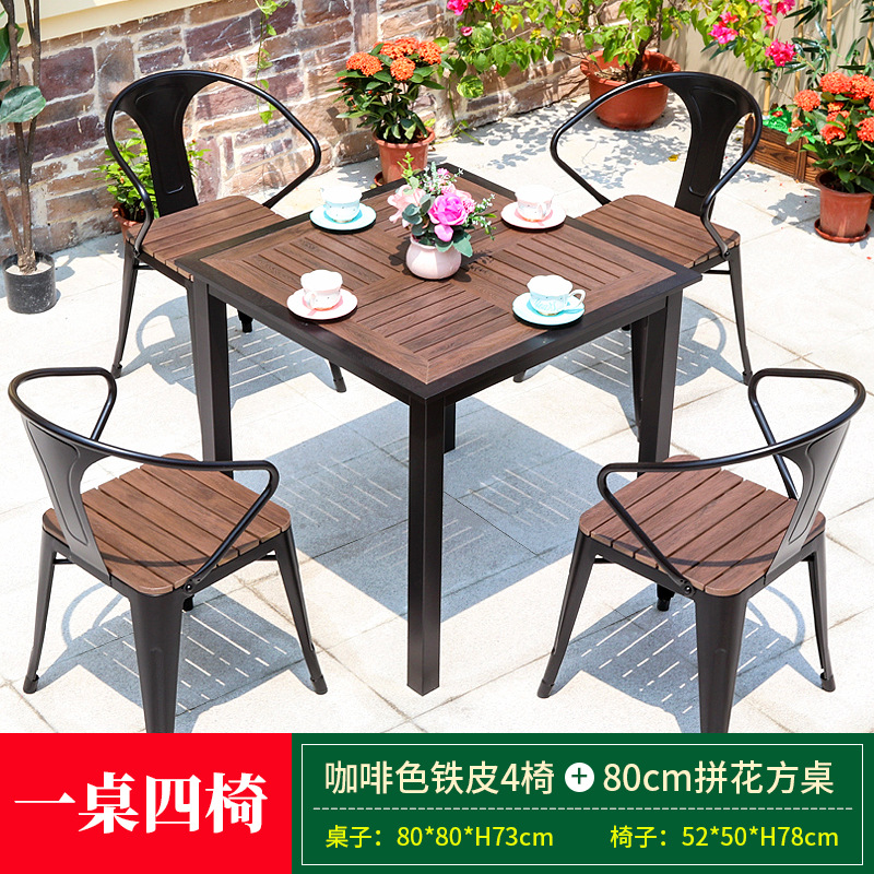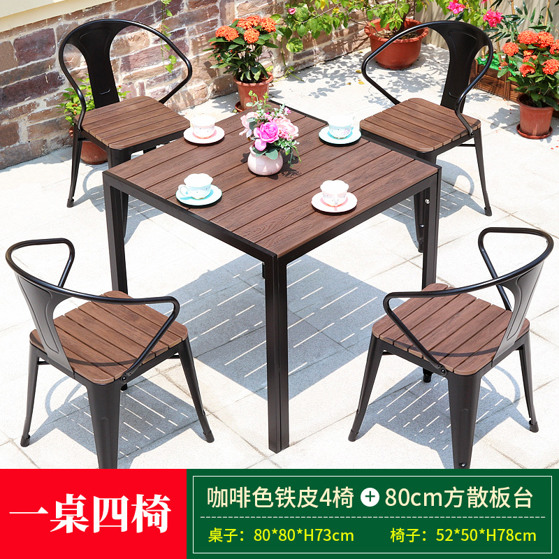 • 브라운 철 의자 4개 + 80cm 정사각형 루즈보드 테이블