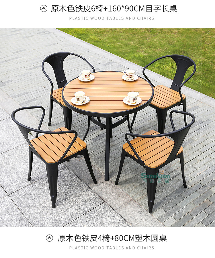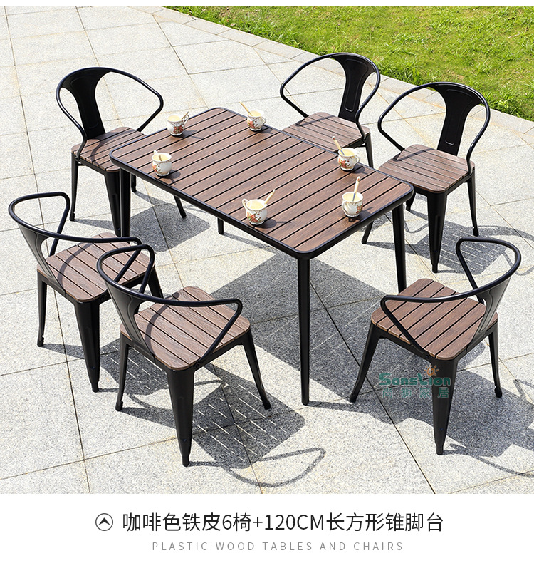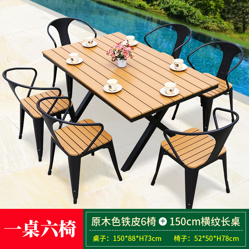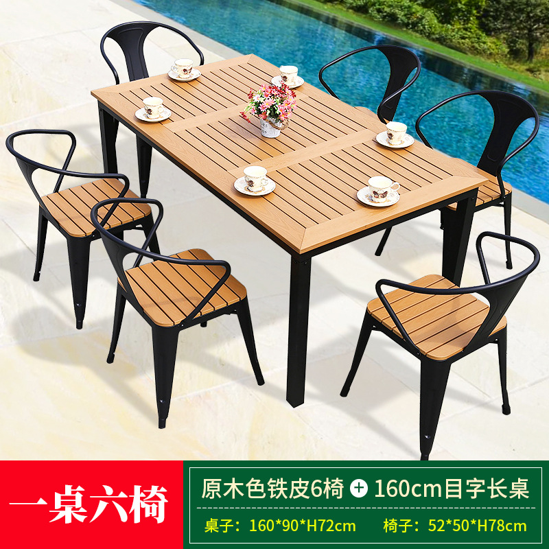 • 로그컬러 철판 의자 6개 + 150cm 길이의 테이블