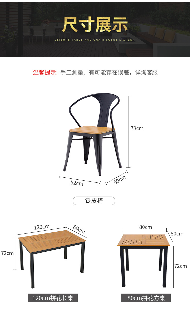 야외 테이블과 의자 레저 빌라 안뜰 야외 발코니 알루미늄 합금 간단한 야외 금속 철 의자 북유럽 테이블과 의자스토어 가기