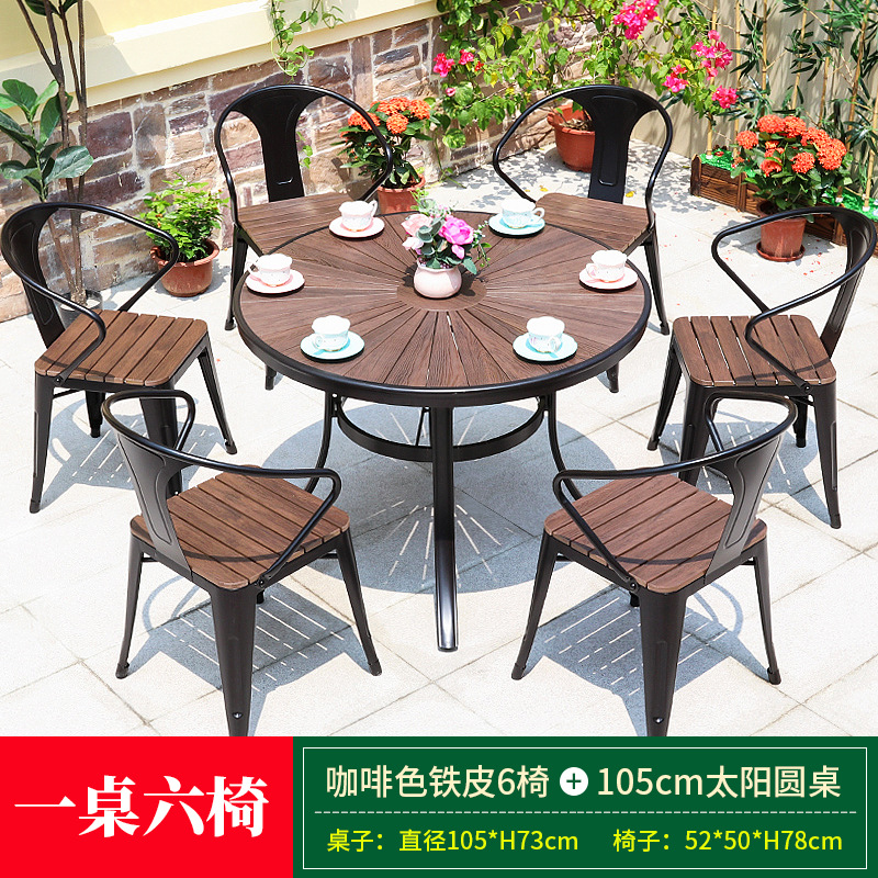 • 브라운 아이언 체어 6개 + 105cm 선 라운드 테이블