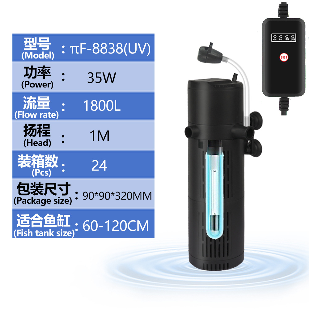국경 간 수족관 필터, 4-in-1 순환 필터, 수중 펌프, 산소 공급, 소형 UV 파도 생성 필터 펌프스토어 가기