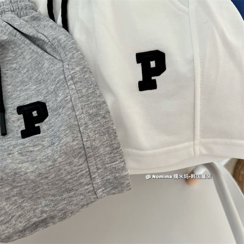 25 어린이 바지 여름 새 소년과 소녀 아기 편지 P 자수 면화 스포츠 바지 어린이 캐주얼 반바지 트렌디 T스토어 가기