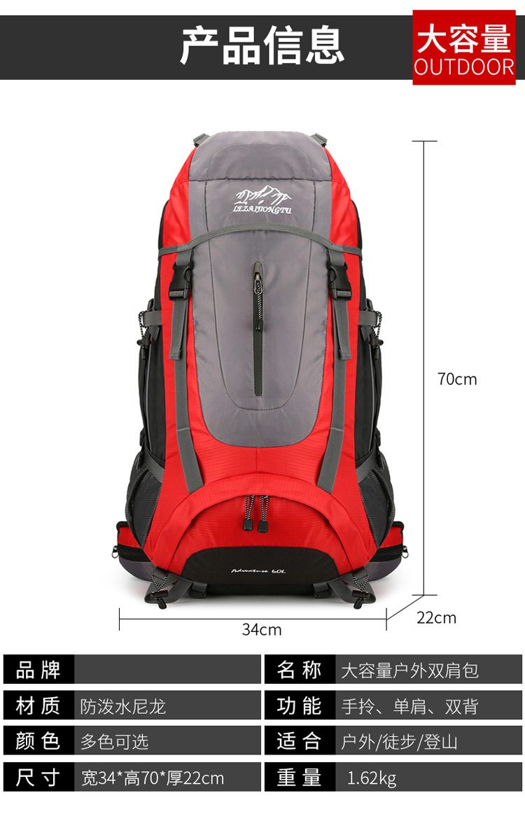 전문 야외 등산 가방 60리터 대용량 방수 스포츠 백팩 하이킹 여행 가방