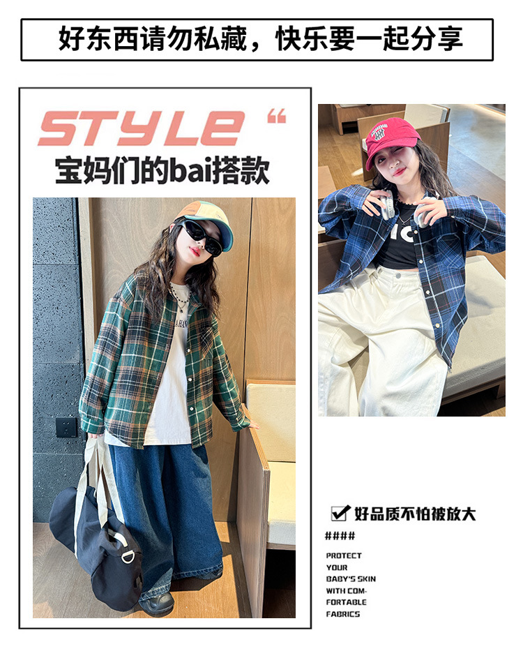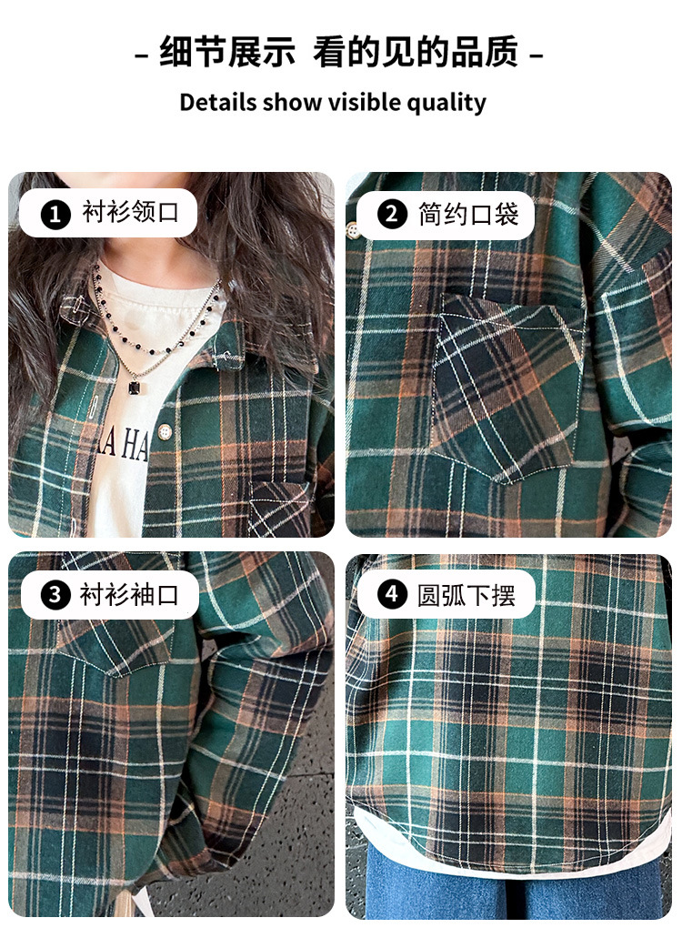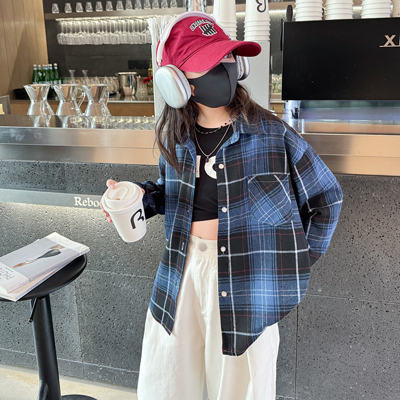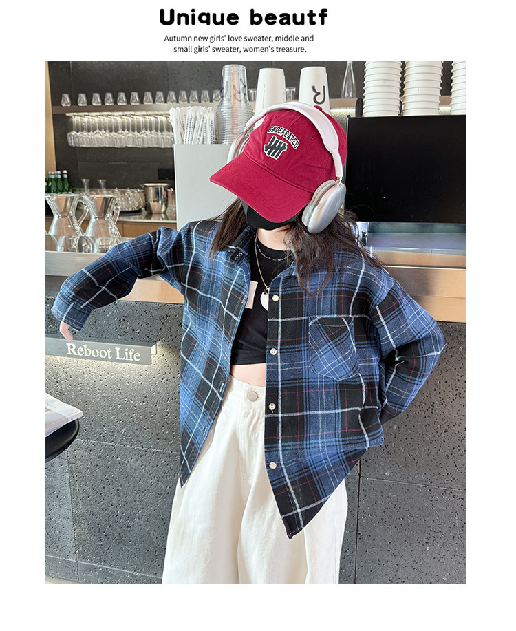 어린이 의류 소녀의 세련된 체크 무늬 셔츠 봄 새로운 중형 및 대형 어린이 세련된 캐주얼 셔츠 겉옷 어린이 셔츠 대외 무역스토어 가기