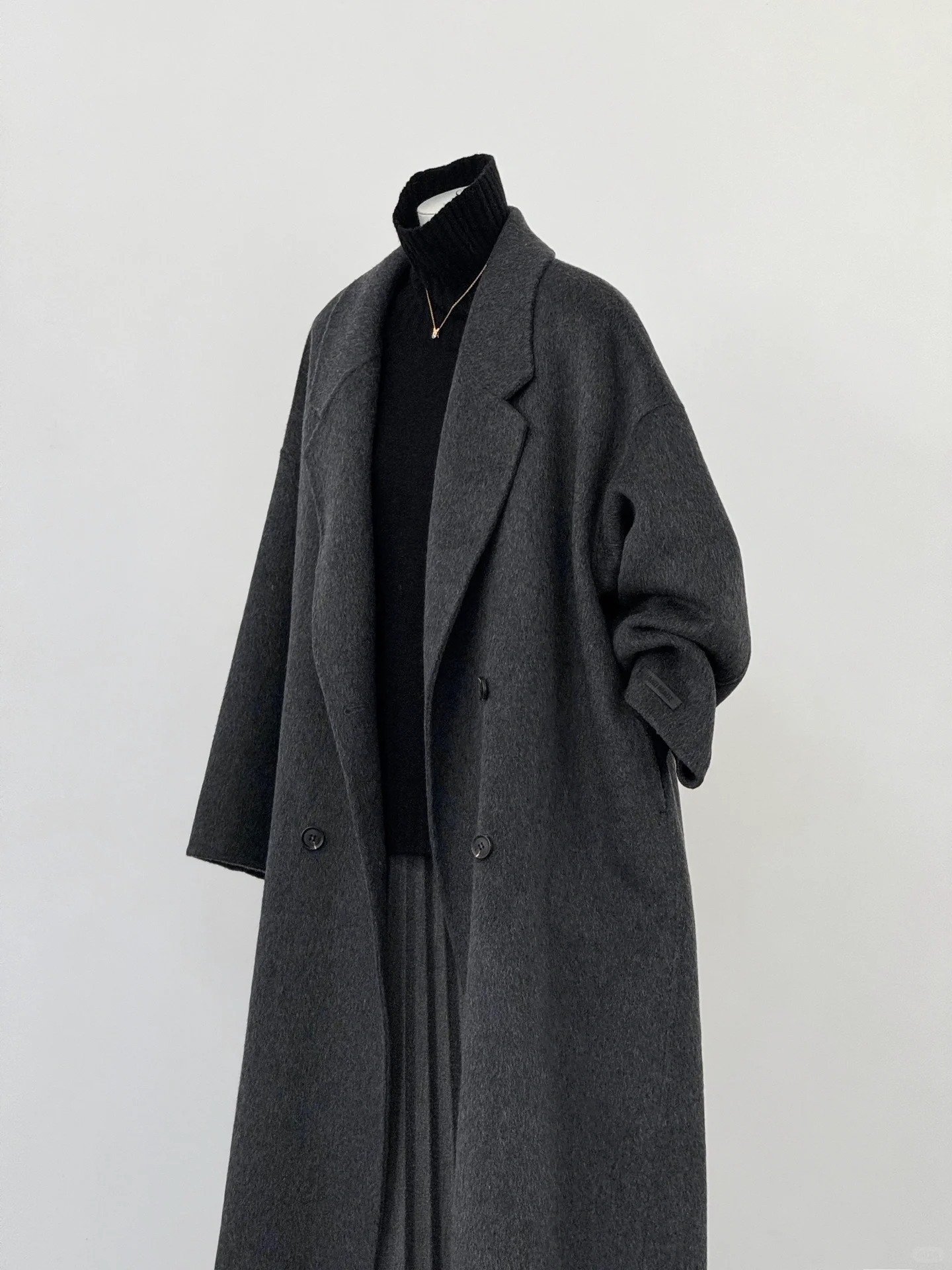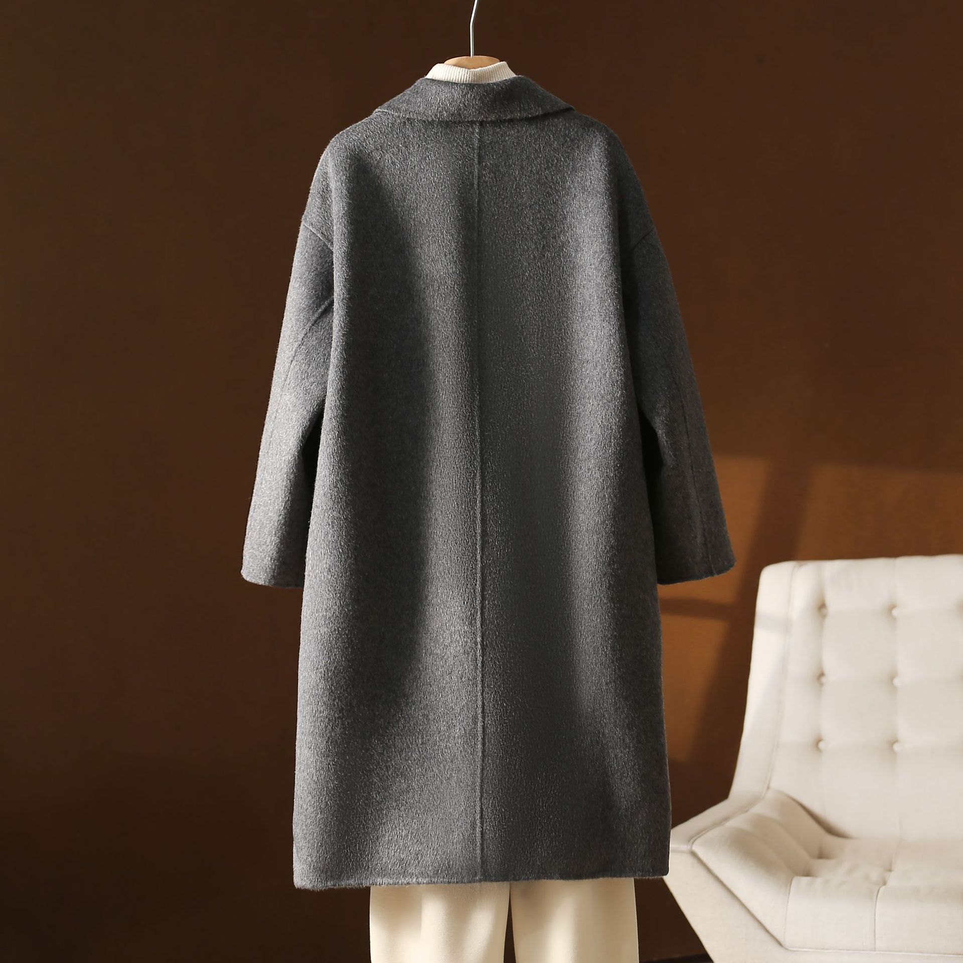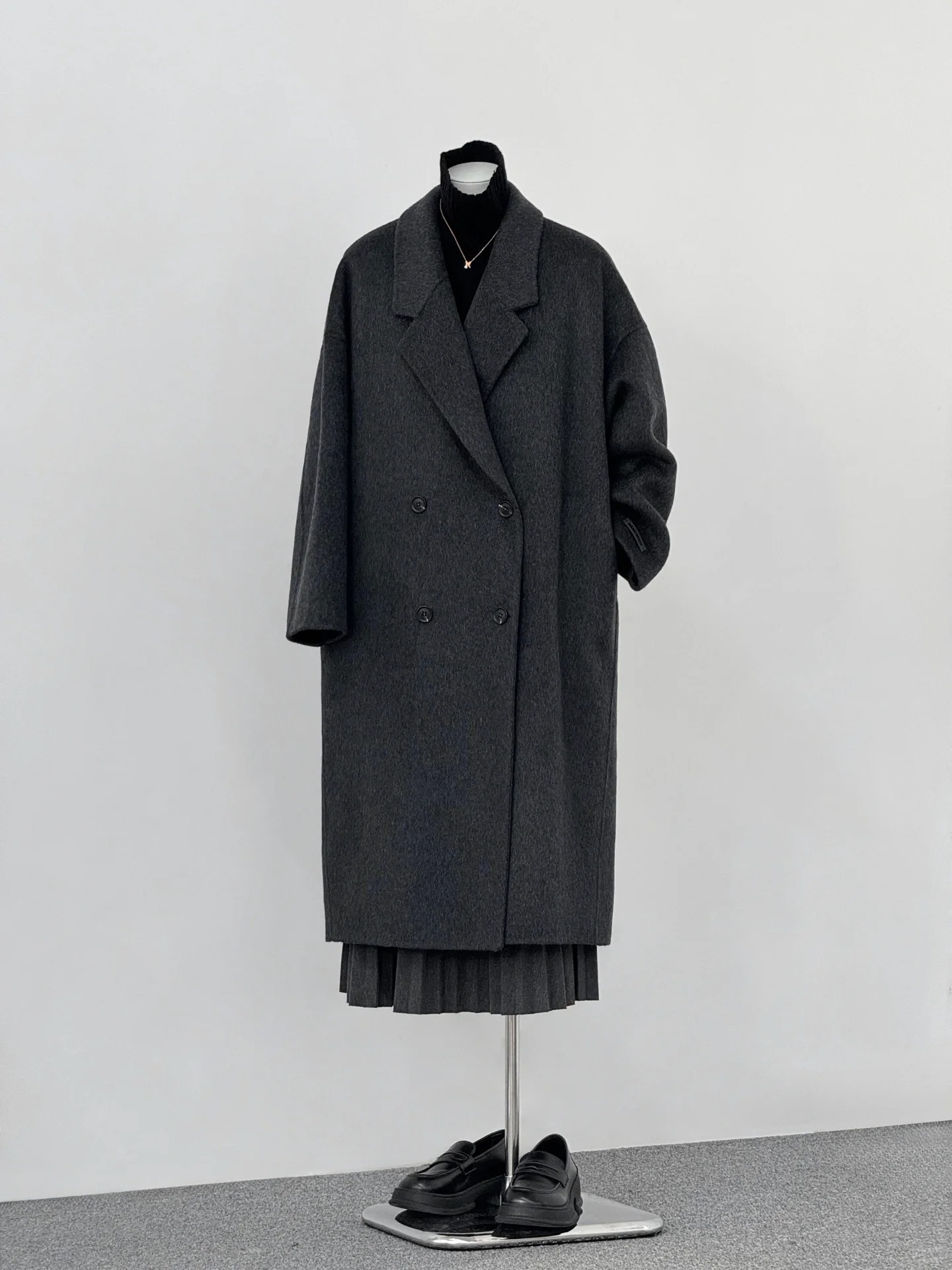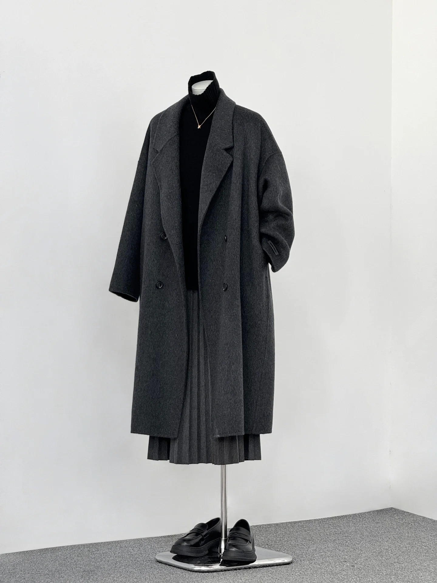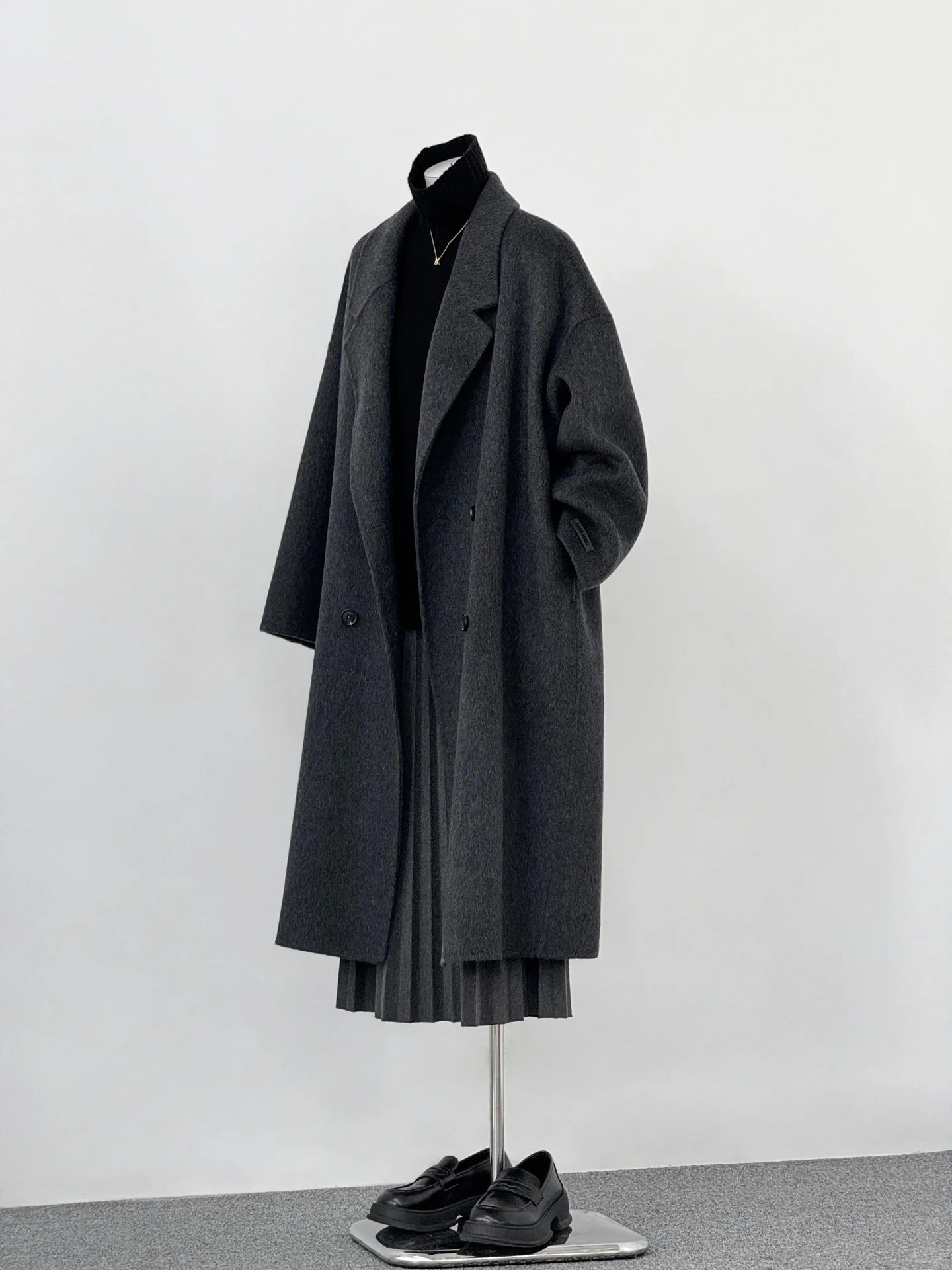2025 가을 겨울 신상품 대형 양면 울 코트 루즈핏 코니형 다크 그레이 그레이 시리즈 롱 울 코트스토어 가기