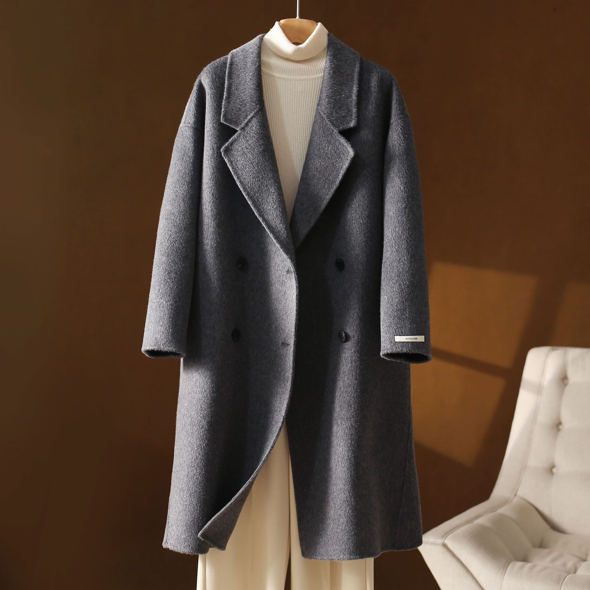 手工双面羊绒大衣,里外一致,不含内胆不含羽绒