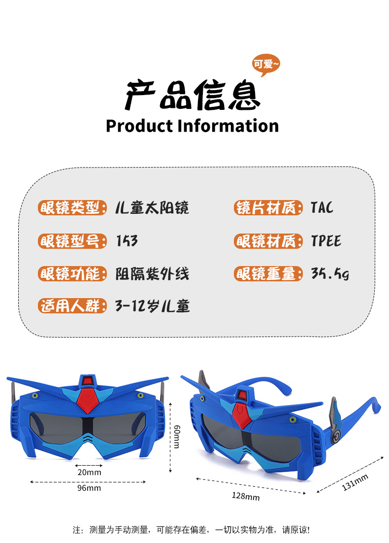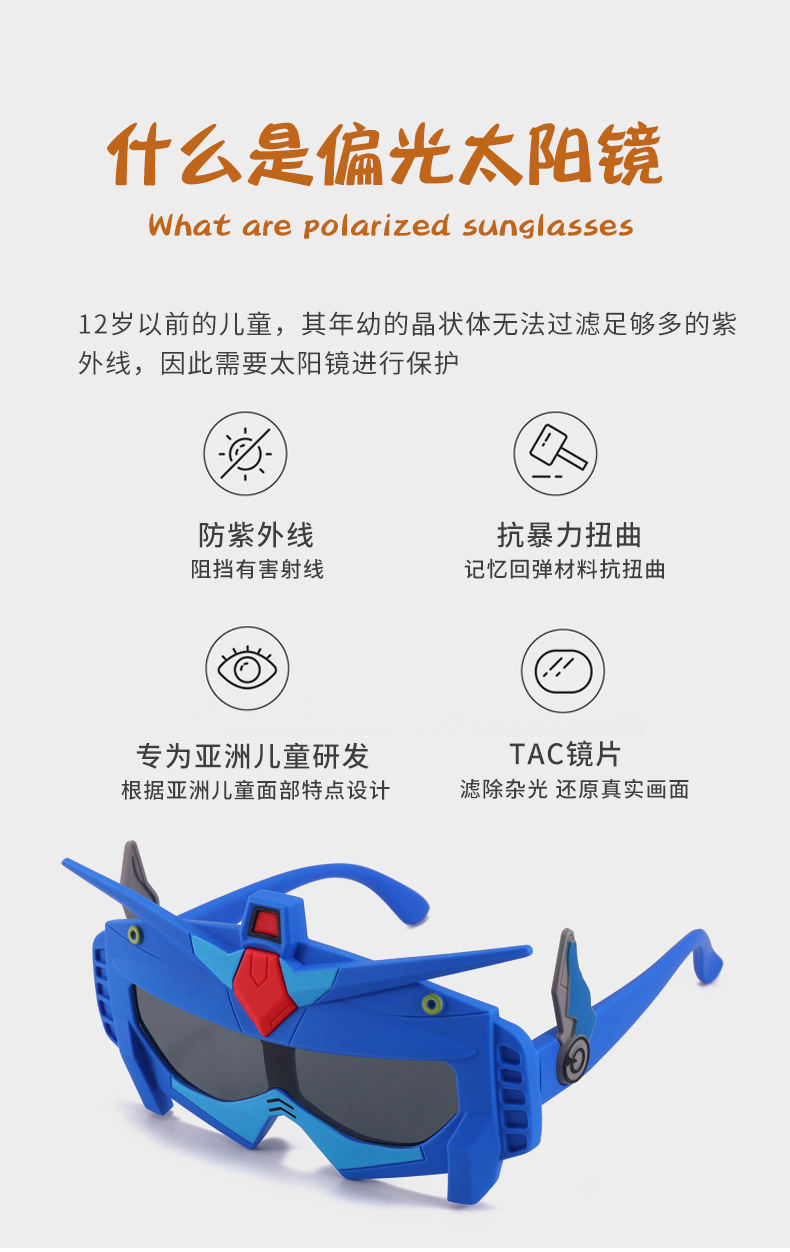 새로운 어린이 만화 선글라스 로봇 모양 아기 태양 보호 선글라스 어린이 유행 안경 JC153