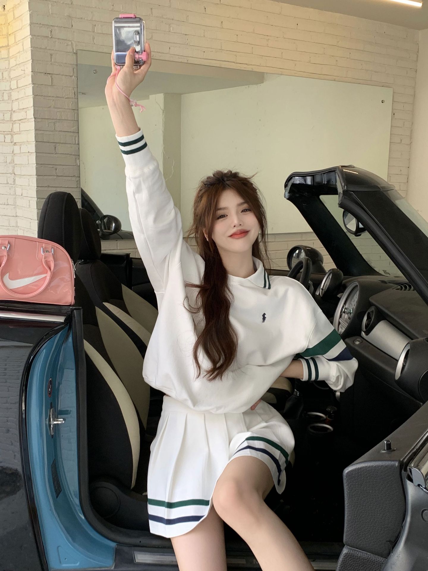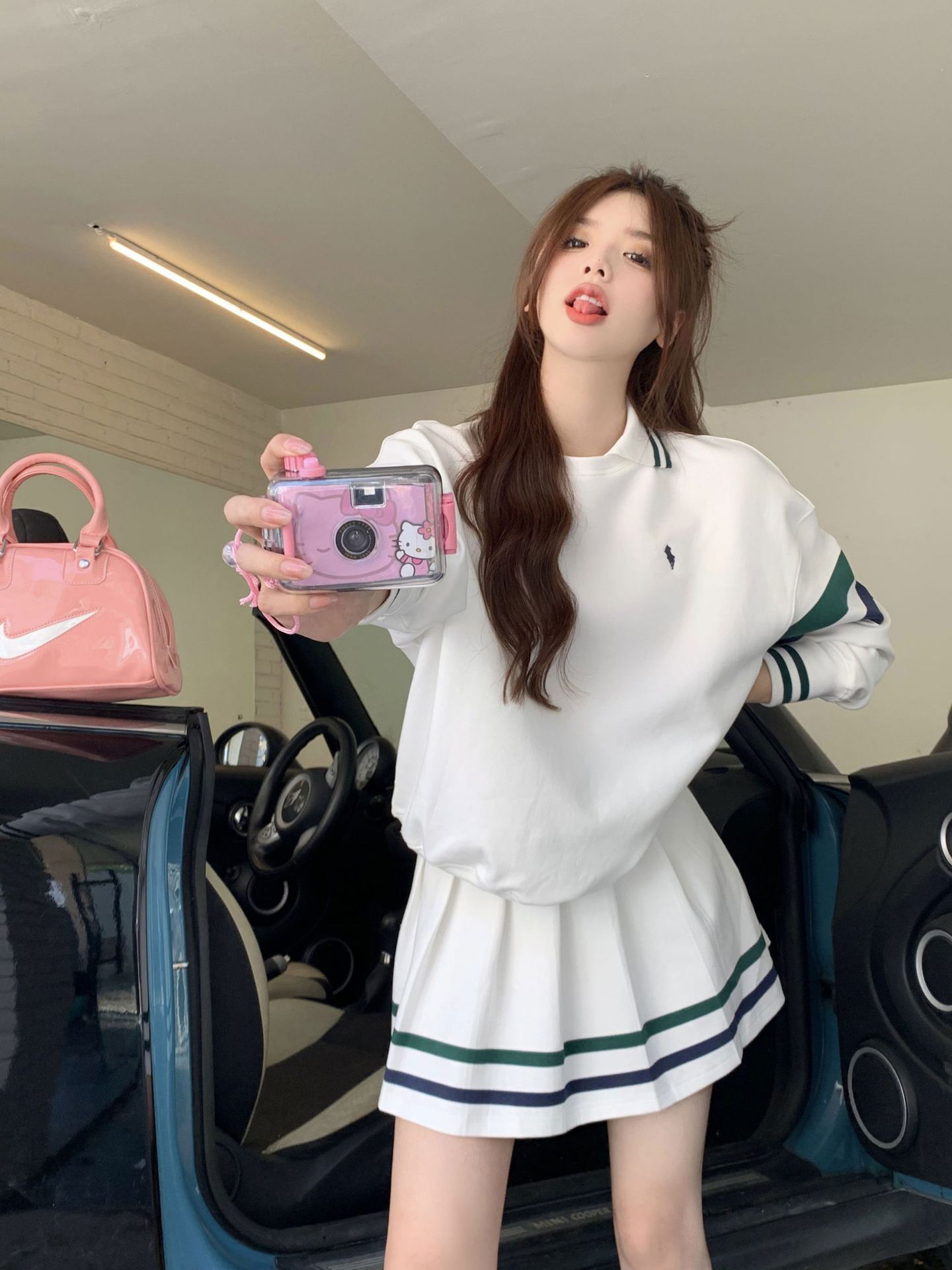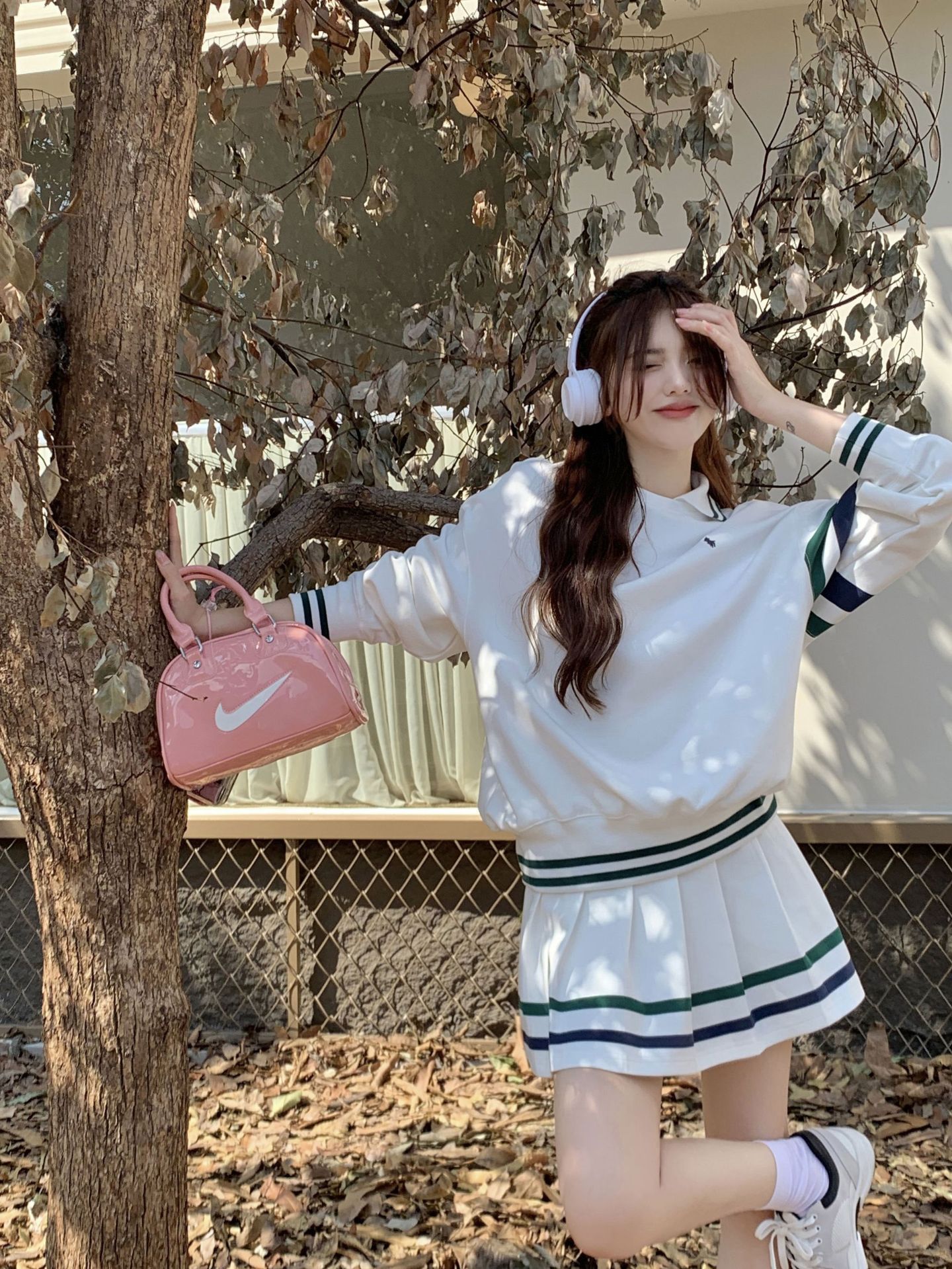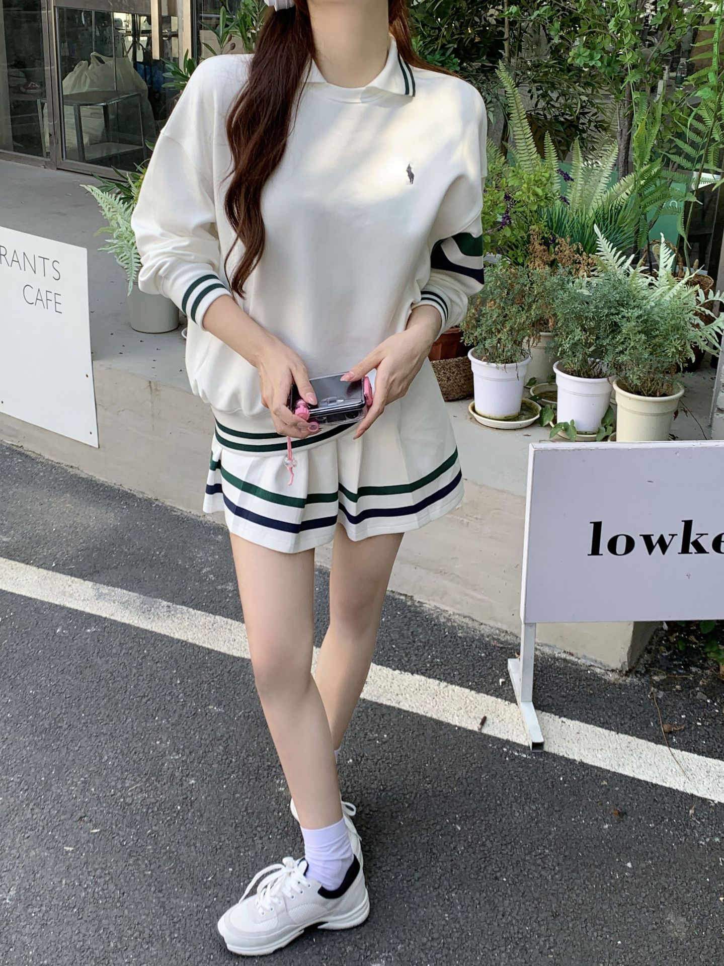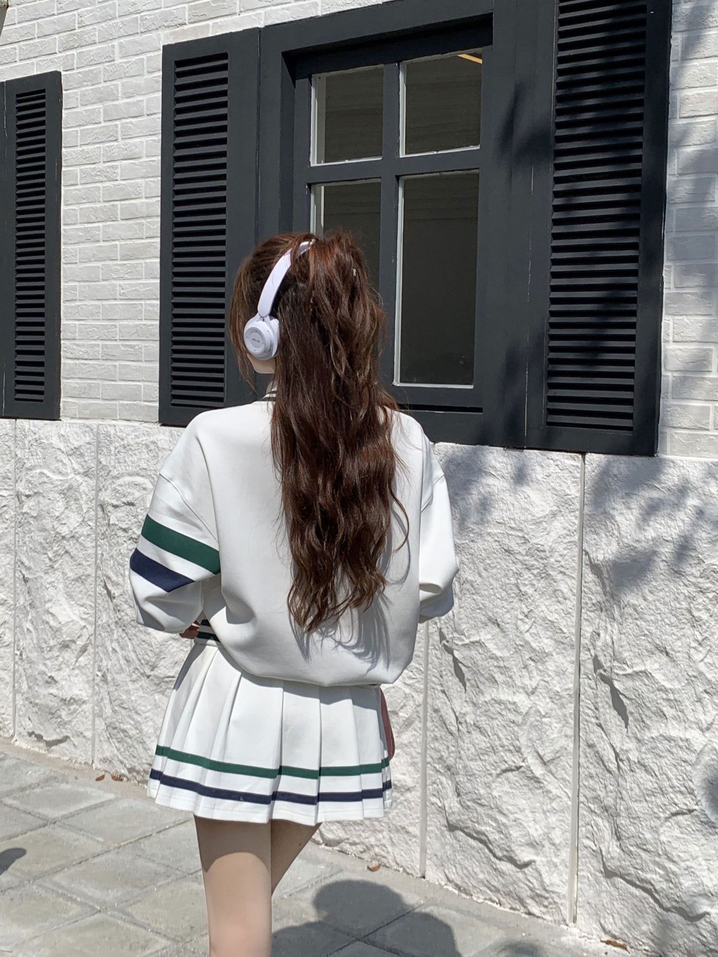 프레피 스타일 튀김 거리 스포츠 세트 짧은 치마 여성 봄과 가을 캐주얼 패션 시대 감소 달콤한 핫 소녀 주름 치마 투피스 세트스토어 가기