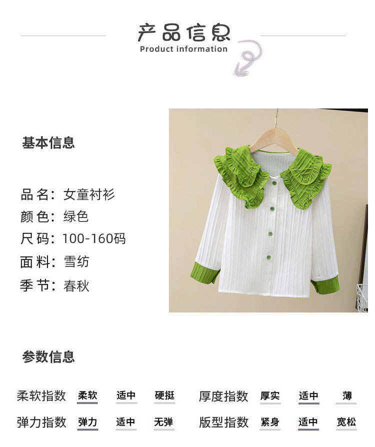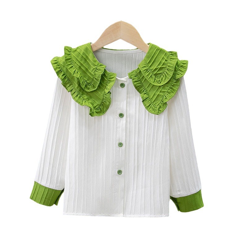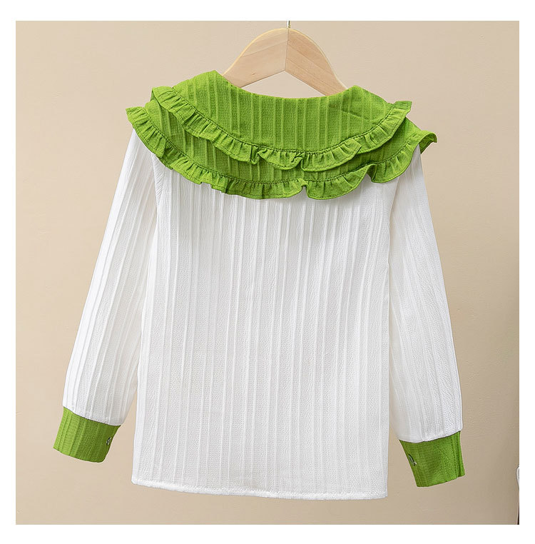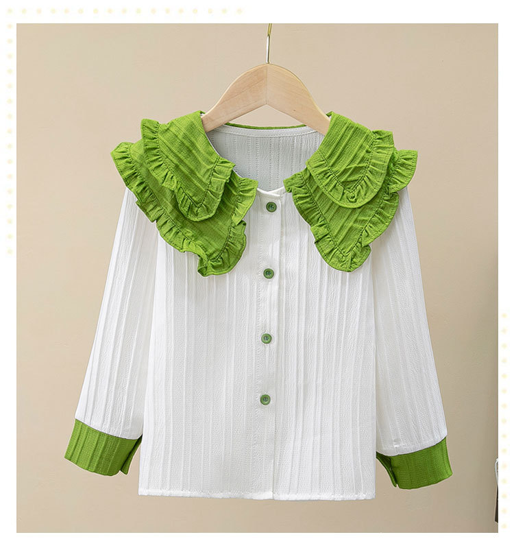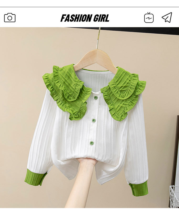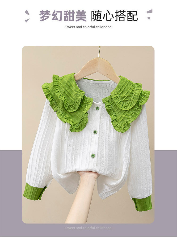 2024 봄 새 소녀 중형 및 대형 어린이 쉬폰 긴팔 옷깃 셔츠 대외 무역 어린이 공주 간단한 셔츠스토어 가기