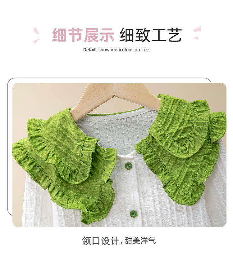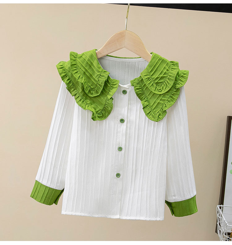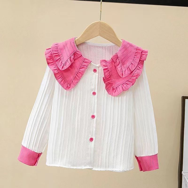 2024 봄 새 소녀 중형 및 대형 어린이 쉬폰 긴팔 옷깃 셔츠 대외 무역 어린이 공주 간단한 셔츠